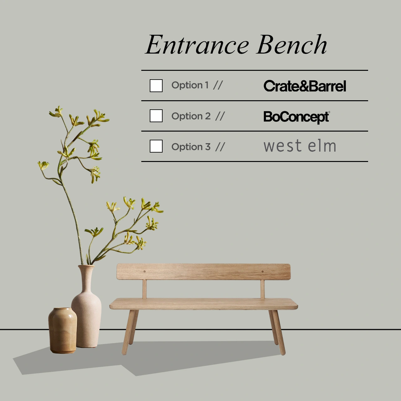 Browse nine design styles, from timeless modern to relaxed coastal. Pick the one that matches your taste, then start building your space.