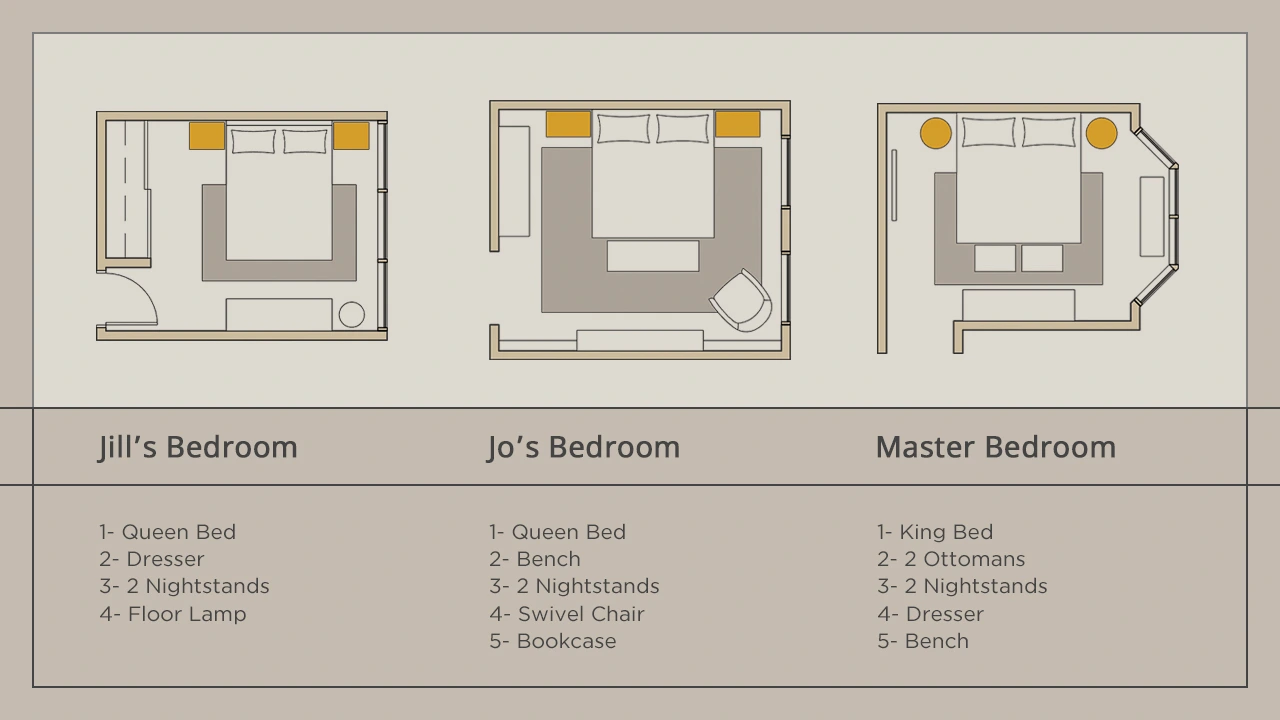 Ready-to-use room layouts with real furniture sized to fit.