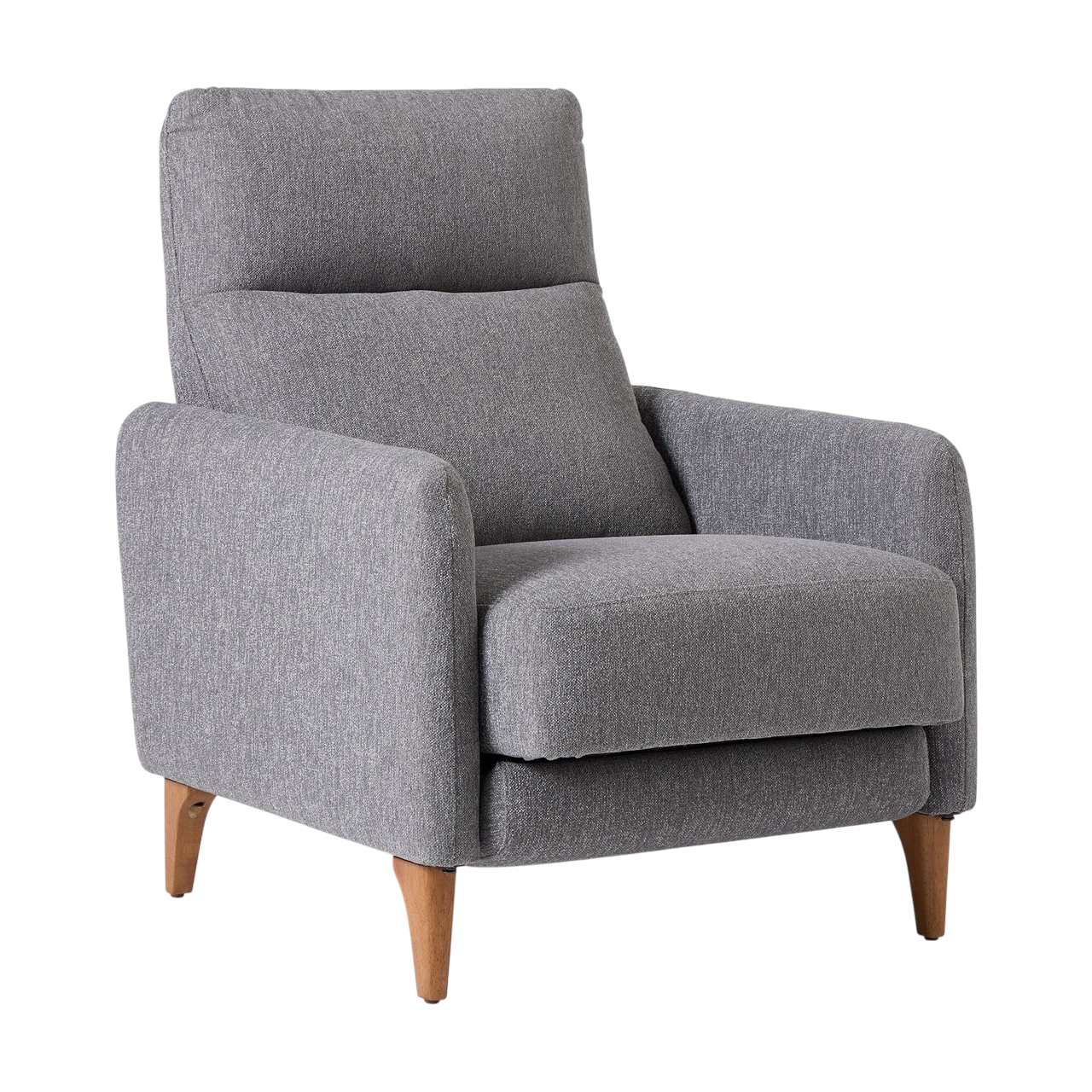 Recliner chair with an engineered wood frame and solid rubberwood legs in natural walnut or pine finishes. |