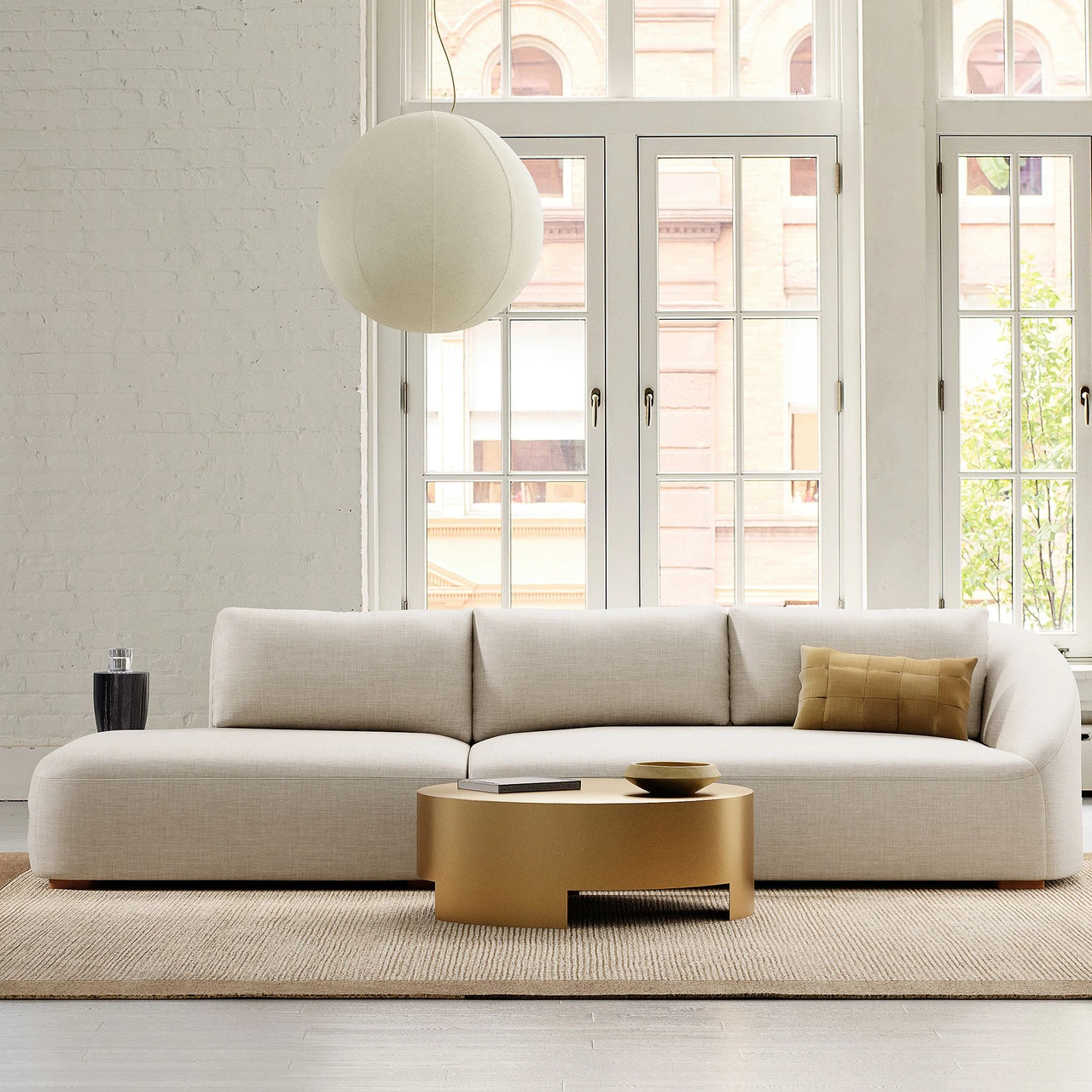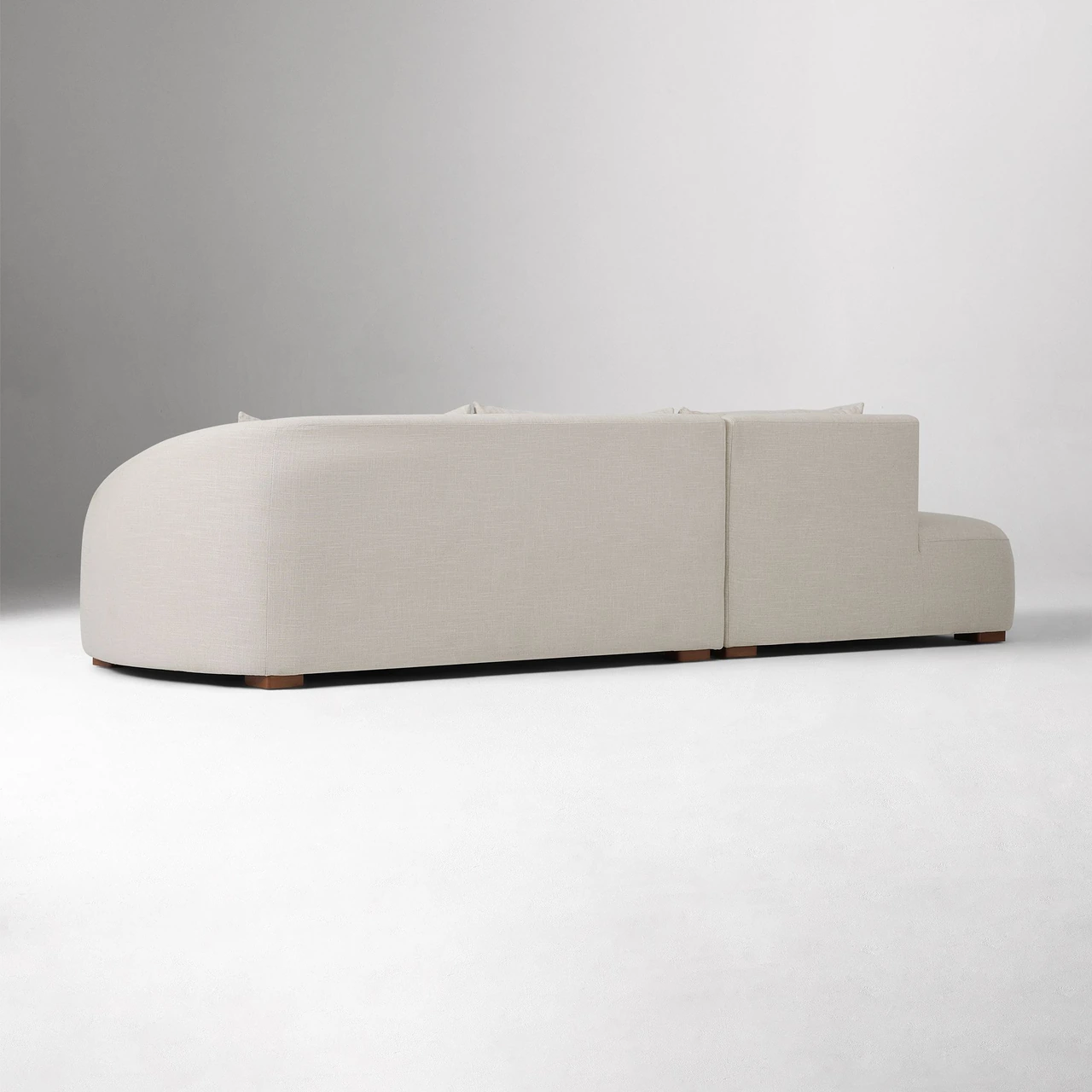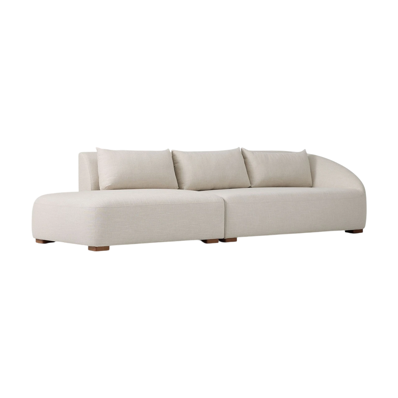 Its deep seat and loose back cushions provide relaxed comfort, supported by durable sinuous springs. Finished with warm walnut-toned legs and available in multiple performance upholstery options, this modular design balances refined style with everyday function.