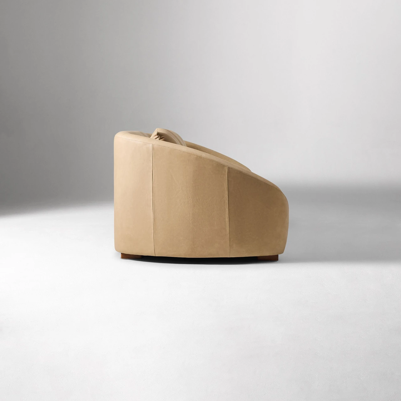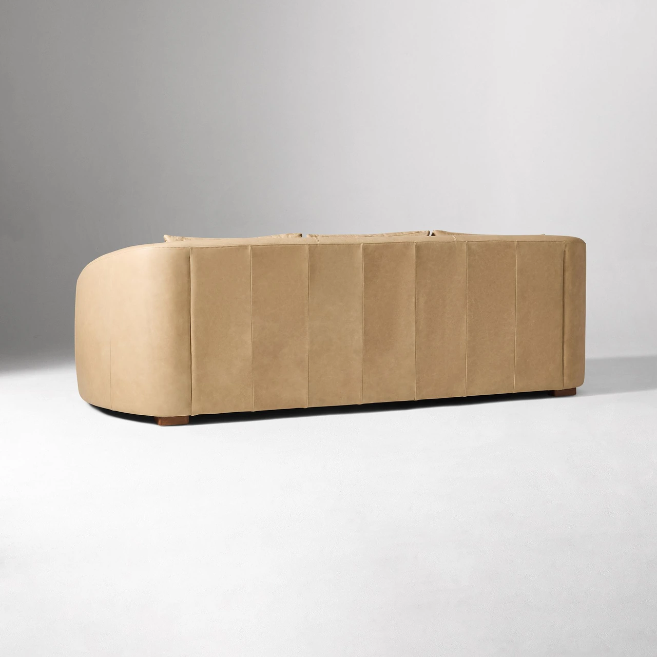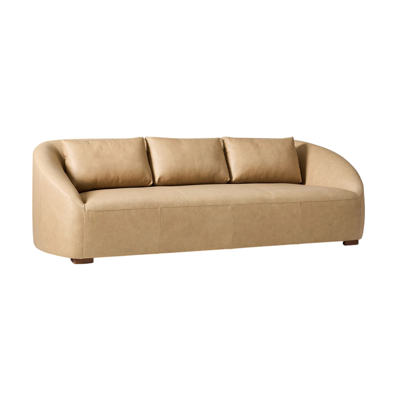 The Aviana Leather Sofa pairs refined craftsmanship with a relaxed, organic silhouette. Wrapped in authentic top-grain leather, each piece carries its own natural character and texture, ensuring no two are exactly alike. The design’s sloping arms and deep seating lend an inviting sense of softness within a clean, contemporary frame.