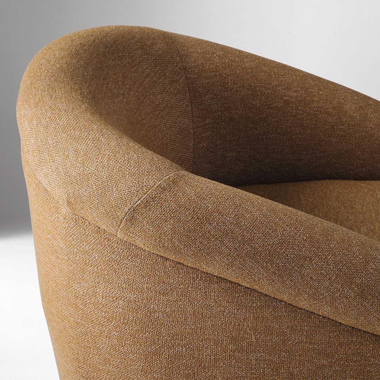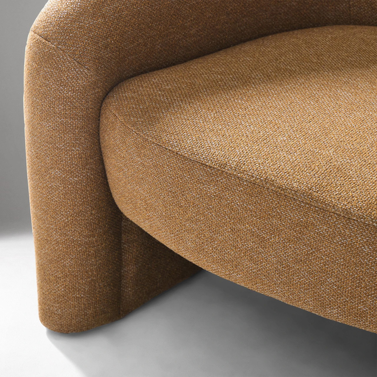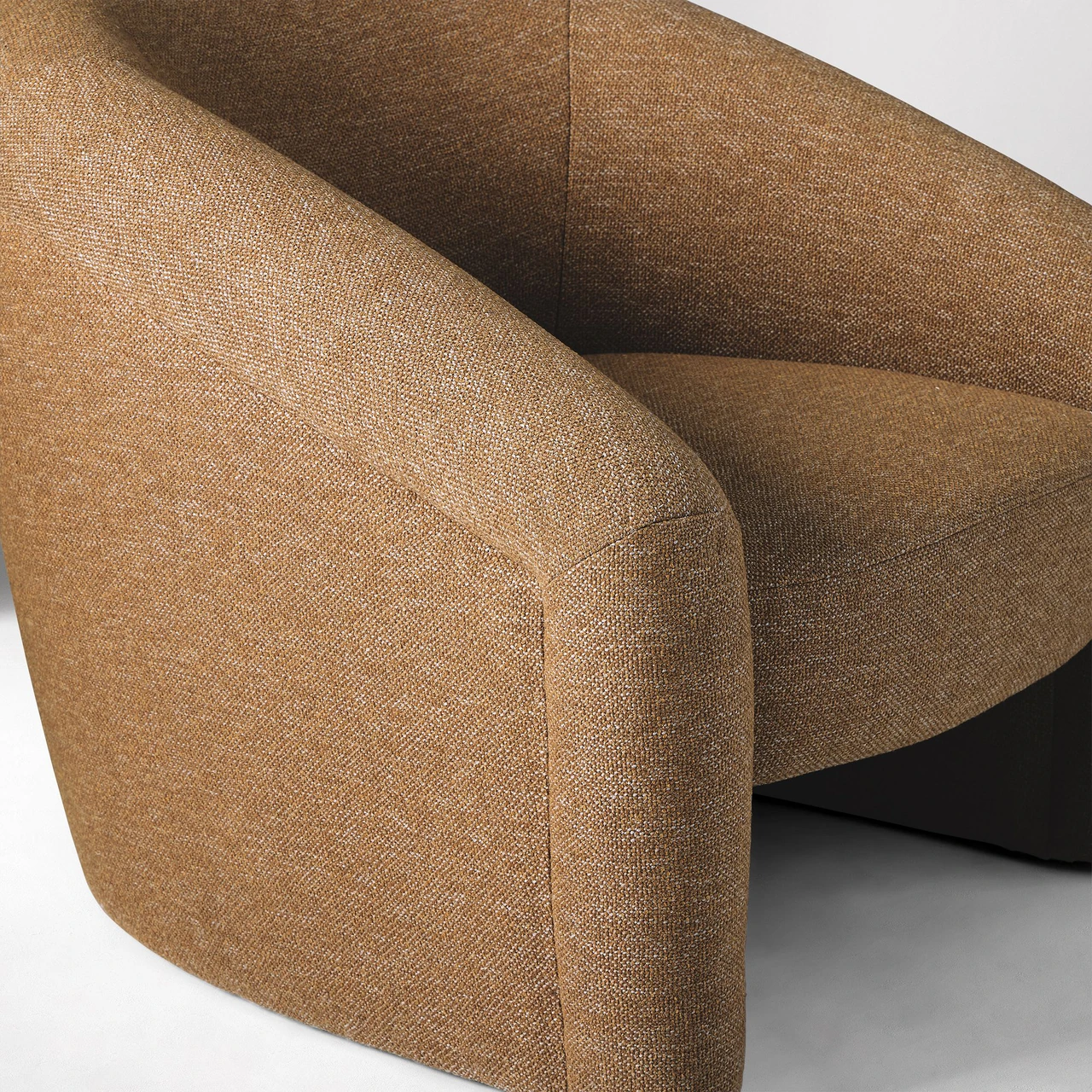 Comfortably proportioned for lounging, the chair’s rounded silhouette and generous cushioning create a relaxed yet tailored feel. Available in a variety of textures and colors, from smooth velvets to structured linens, the Berra Chair blends visual softness with contemporary design suitable for living rooms or lounge areas.