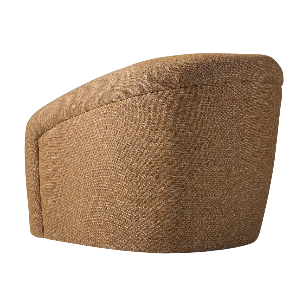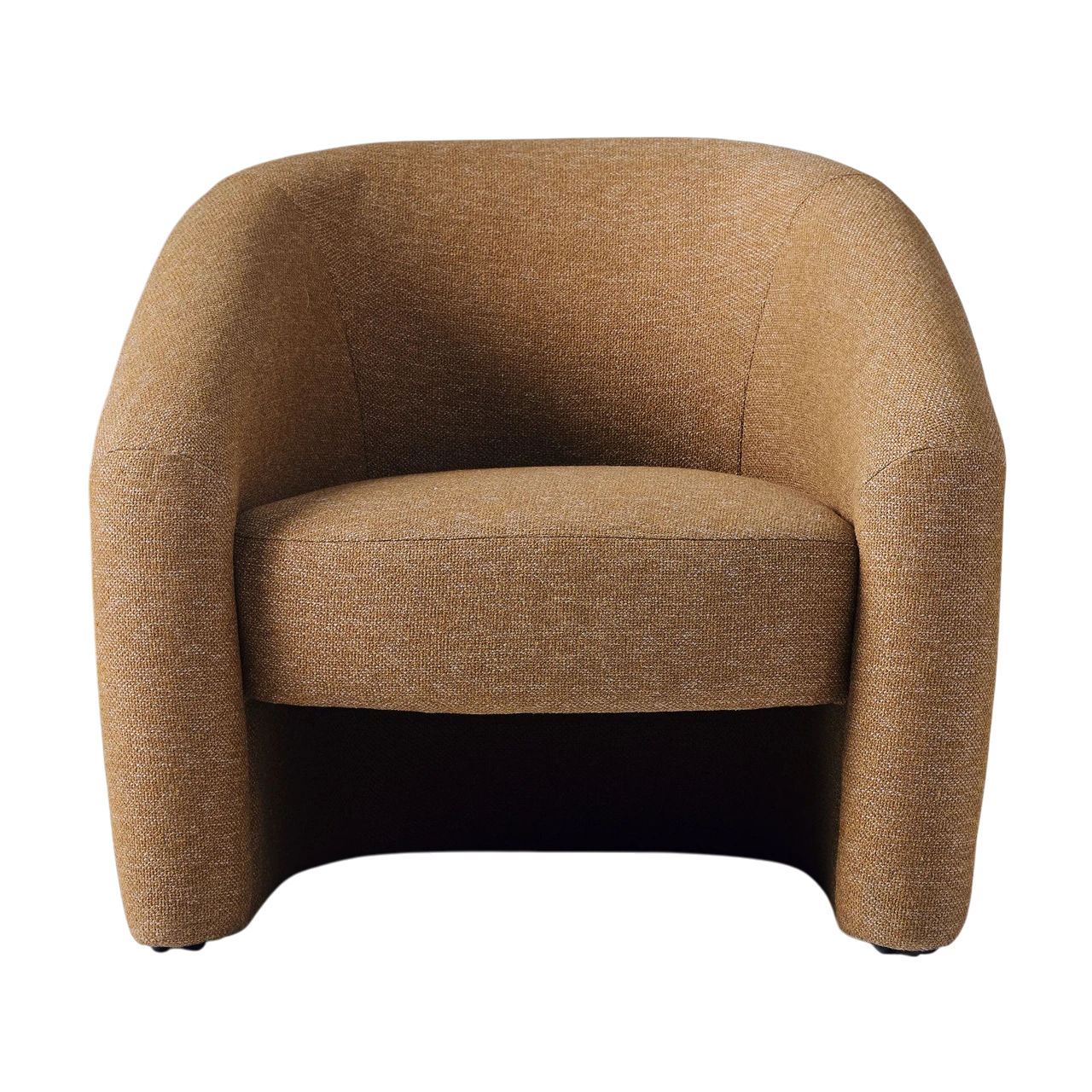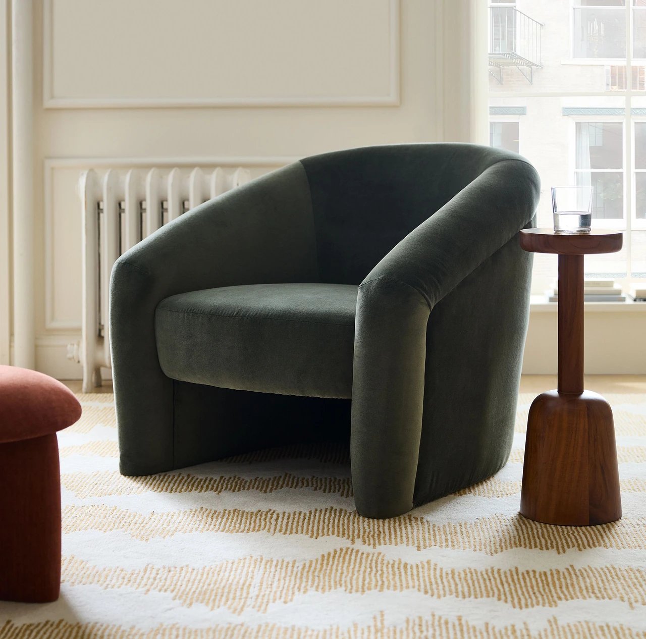 Comfortably proportioned for lounging, the chair’s rounded silhouette and generous cushioning create a relaxed yet tailored feel. Available in a variety of textures and colors, from smooth velvets to structured linens, the Berra Chair blends visual softness with contemporary design suitable for living rooms or lounge areas.