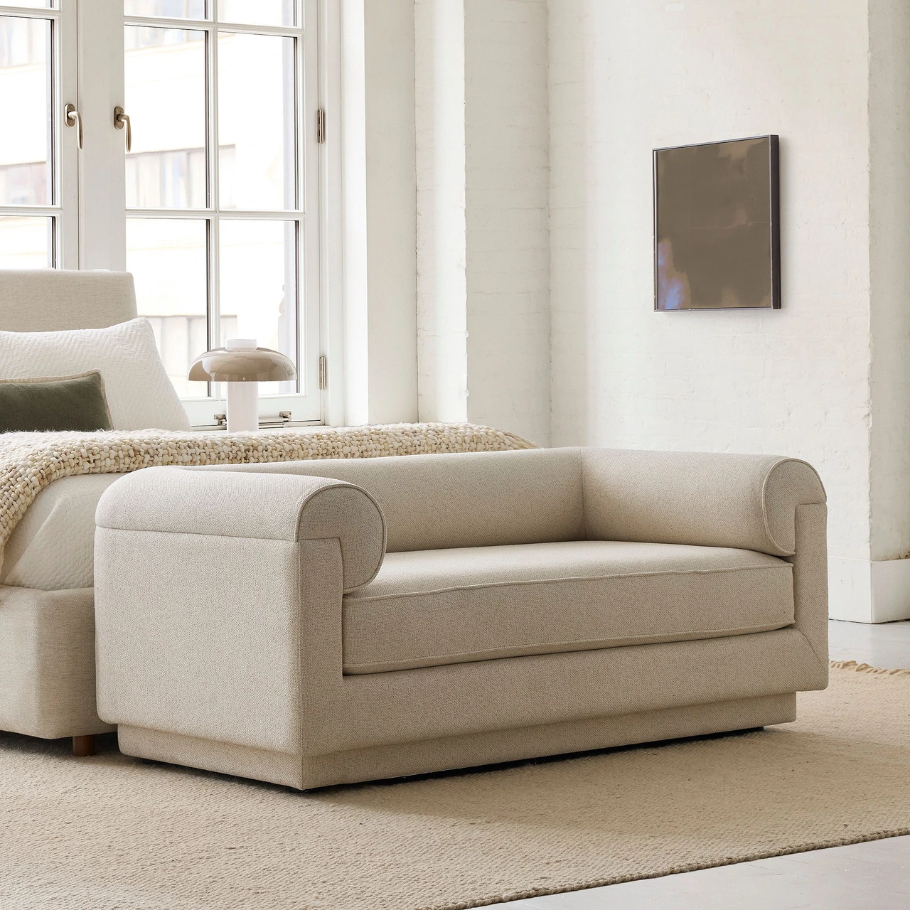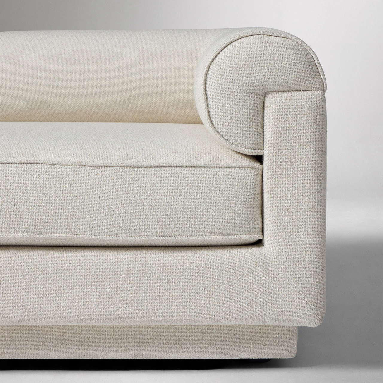 Its fully upholstered form and small-scale proportions make it versatile for living rooms, offices, or studio settings. Crafted for durability and refined comfort, the Bogart maintains a polished, modern aesthetic while remaining inviting and functional.