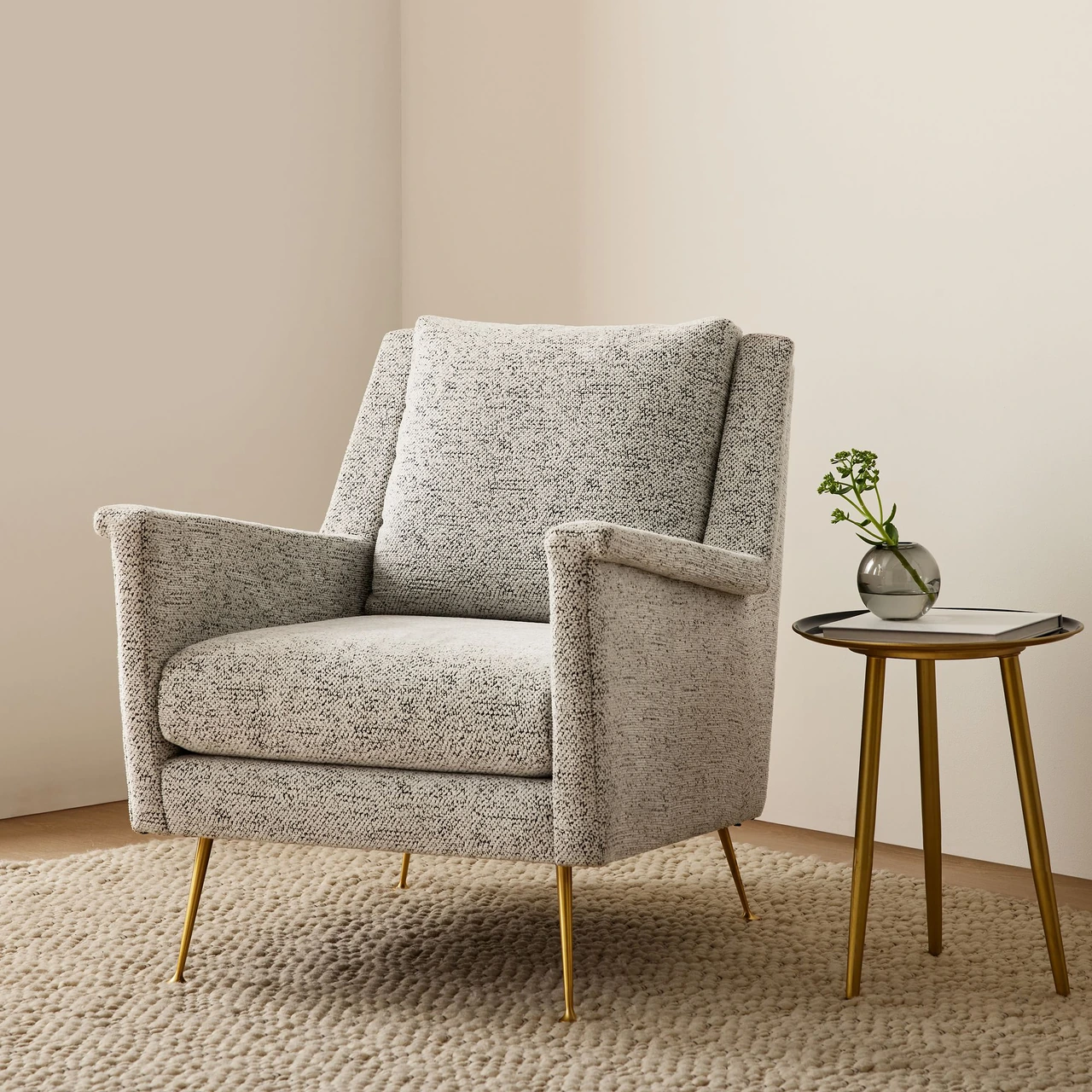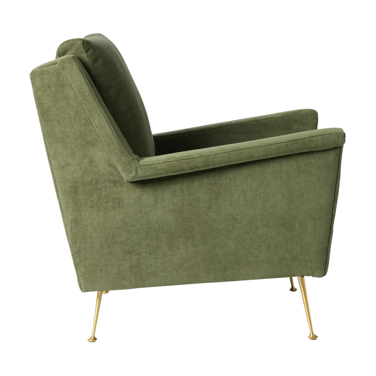 The Carlo Mid-Century Chair combines sharp lines and tailored upholstery to create a compact, refined lounge piece inspired by mid-century design. Its angular frame and slim metal legs lend a light, architectural feel, balancing structure and comfort in equal measure.