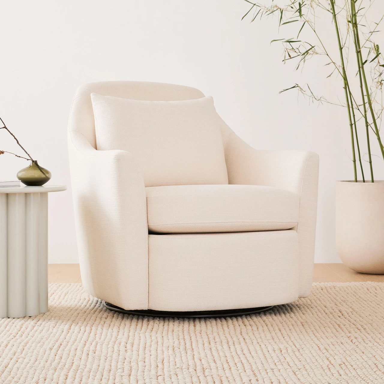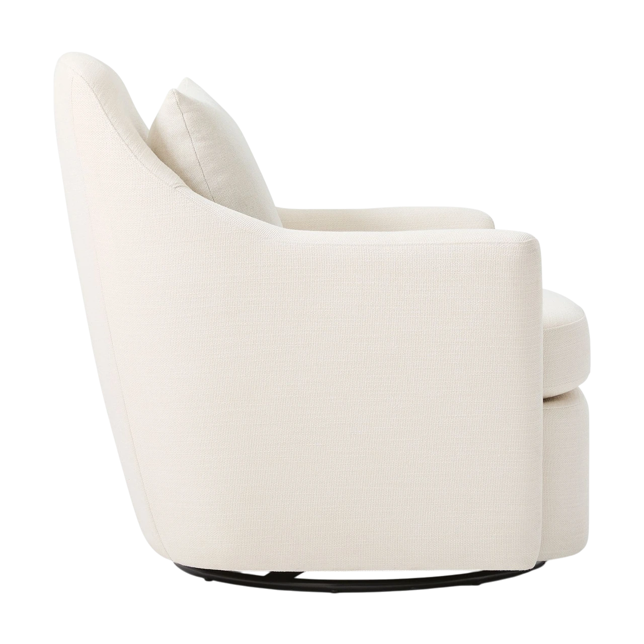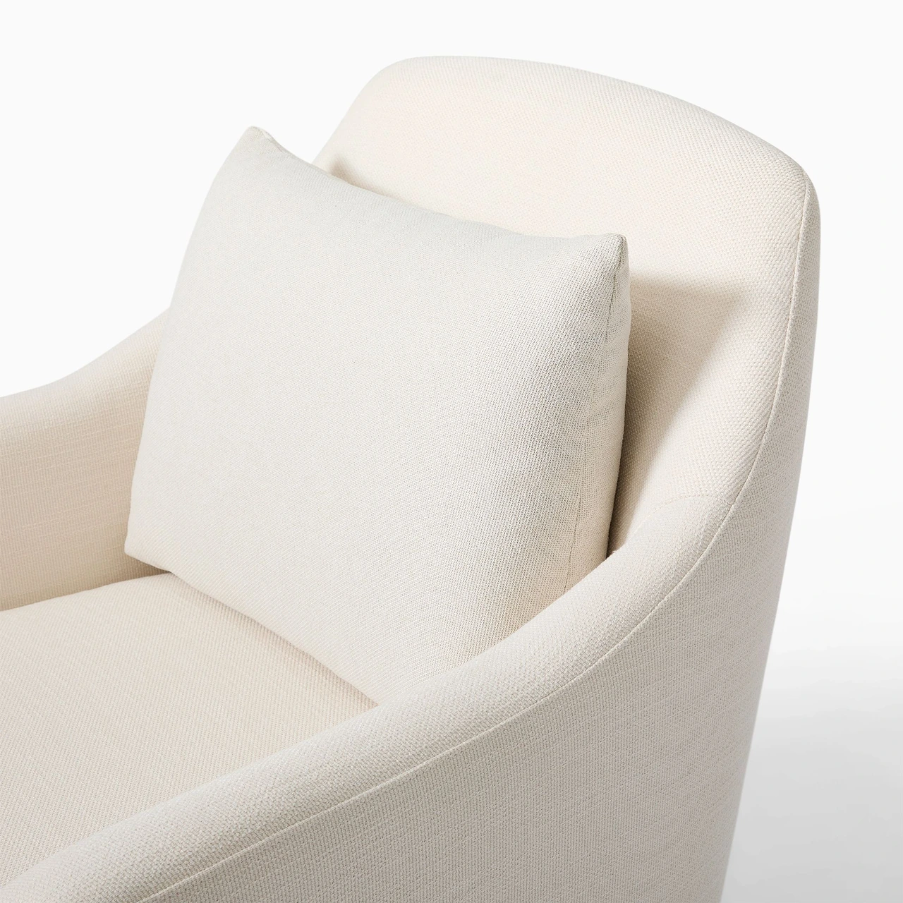 The Dallas Swivel Chair combines a tailored silhouette with enveloping comfort, featuring gently winged arms that add both character and support. Its plush cushions and softly rounded seat create an inviting profile suited to relaxed lounging or conversational seating.