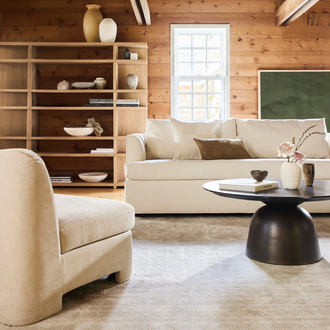 Loose, reversible cushions with zip-off covers in boxed or toss-back styles.