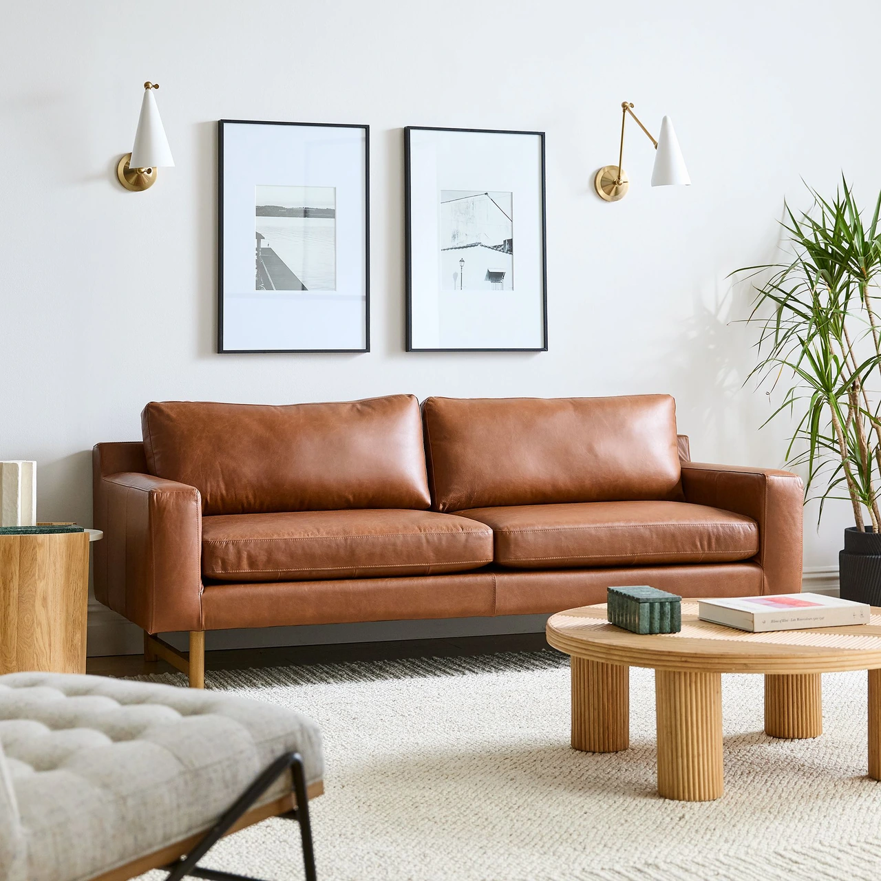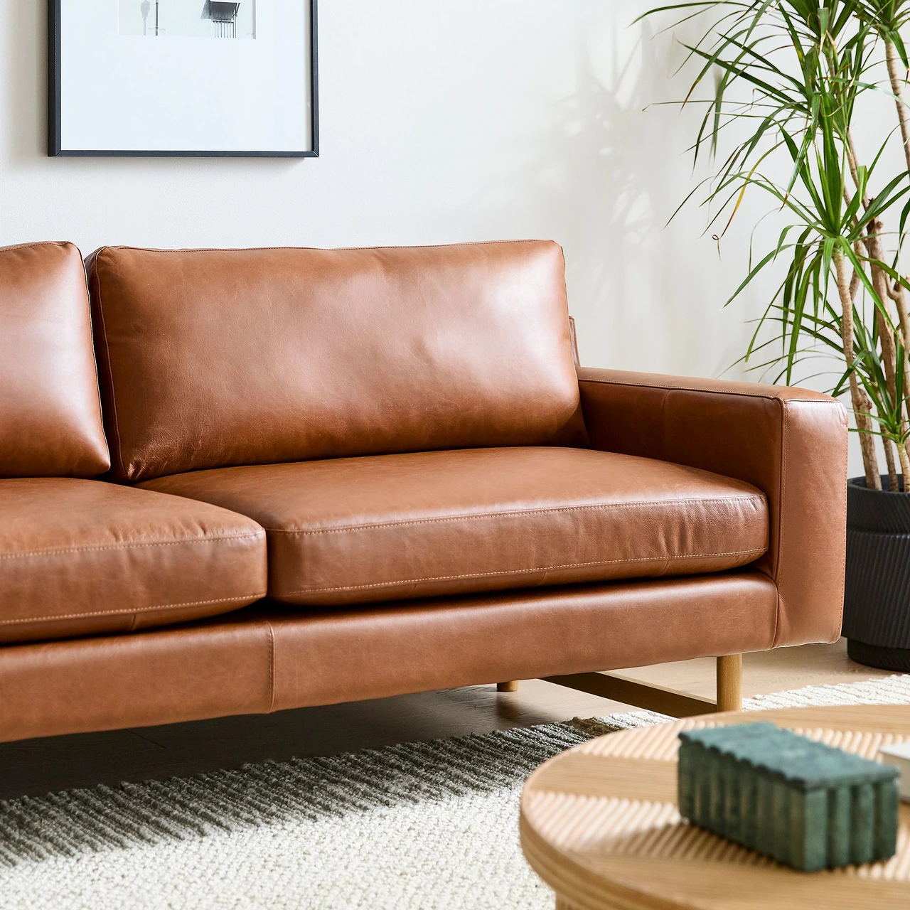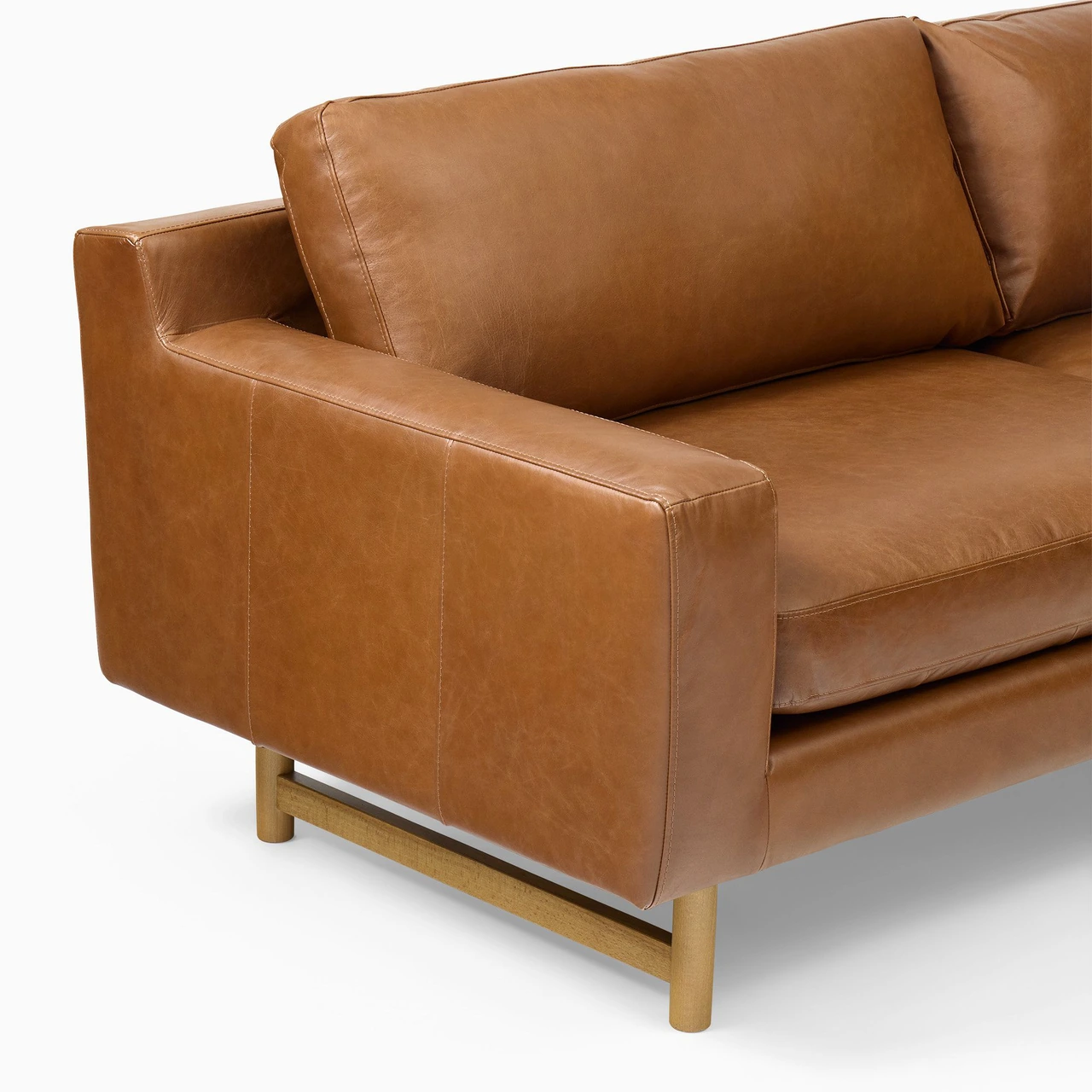The Eddy Leather Sofa pairs modern lines with timeless craftsmanship, featuring a structured frame and low arms that emphasize its wide, inviting seat. Built on a solid hardwood foundation, it offers firm support complemented by resilient foam and fibre-filled cushions.