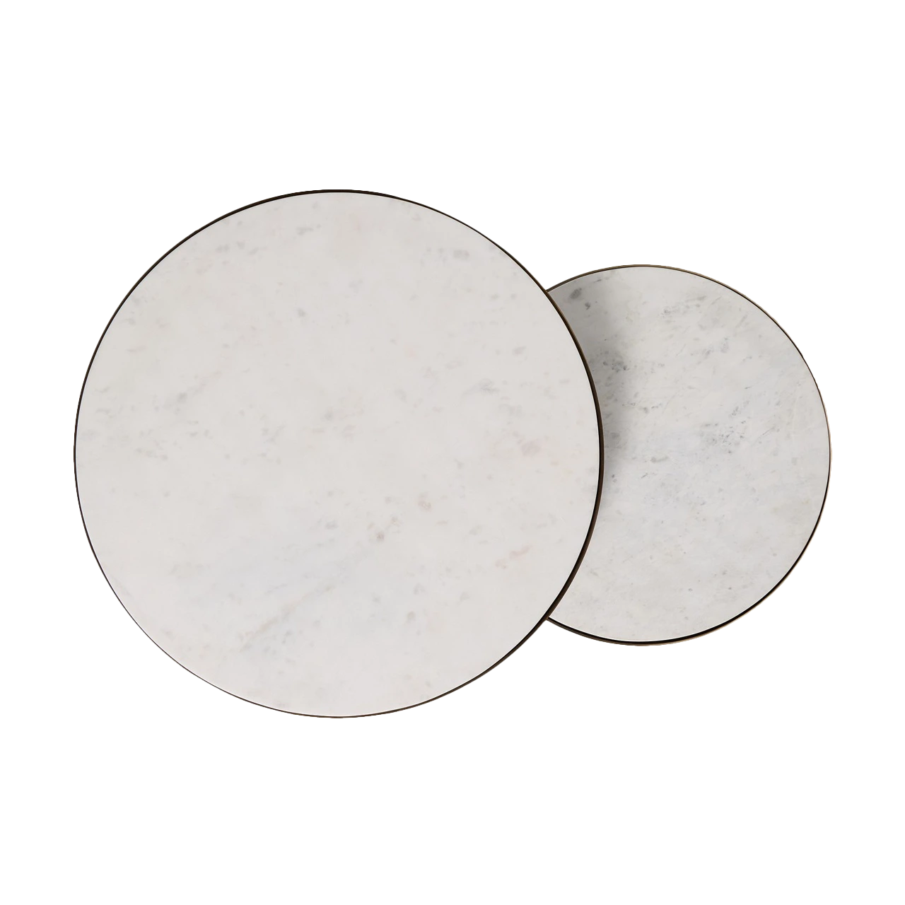 Set of two round nesting coffee tables with white Banswara marble tops.