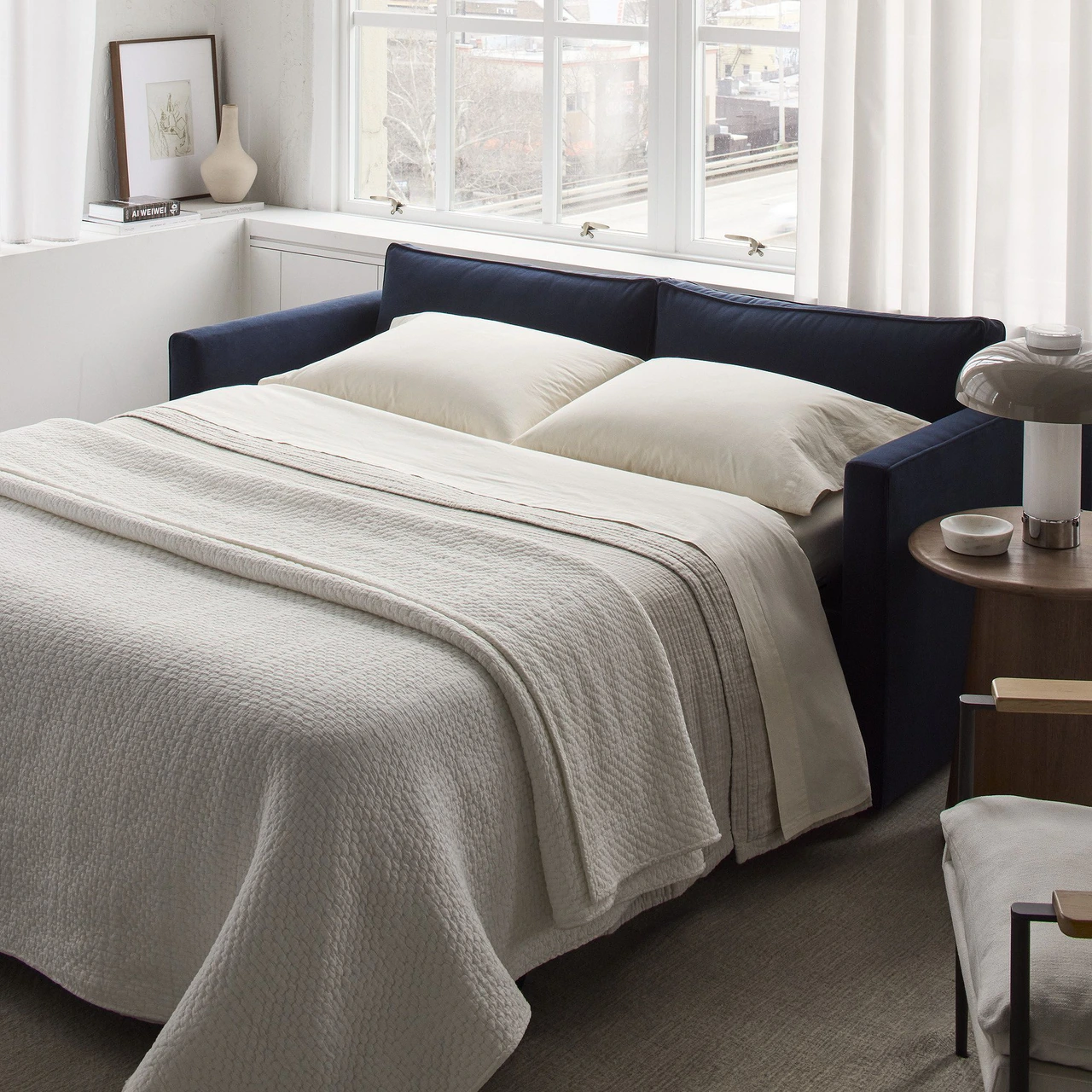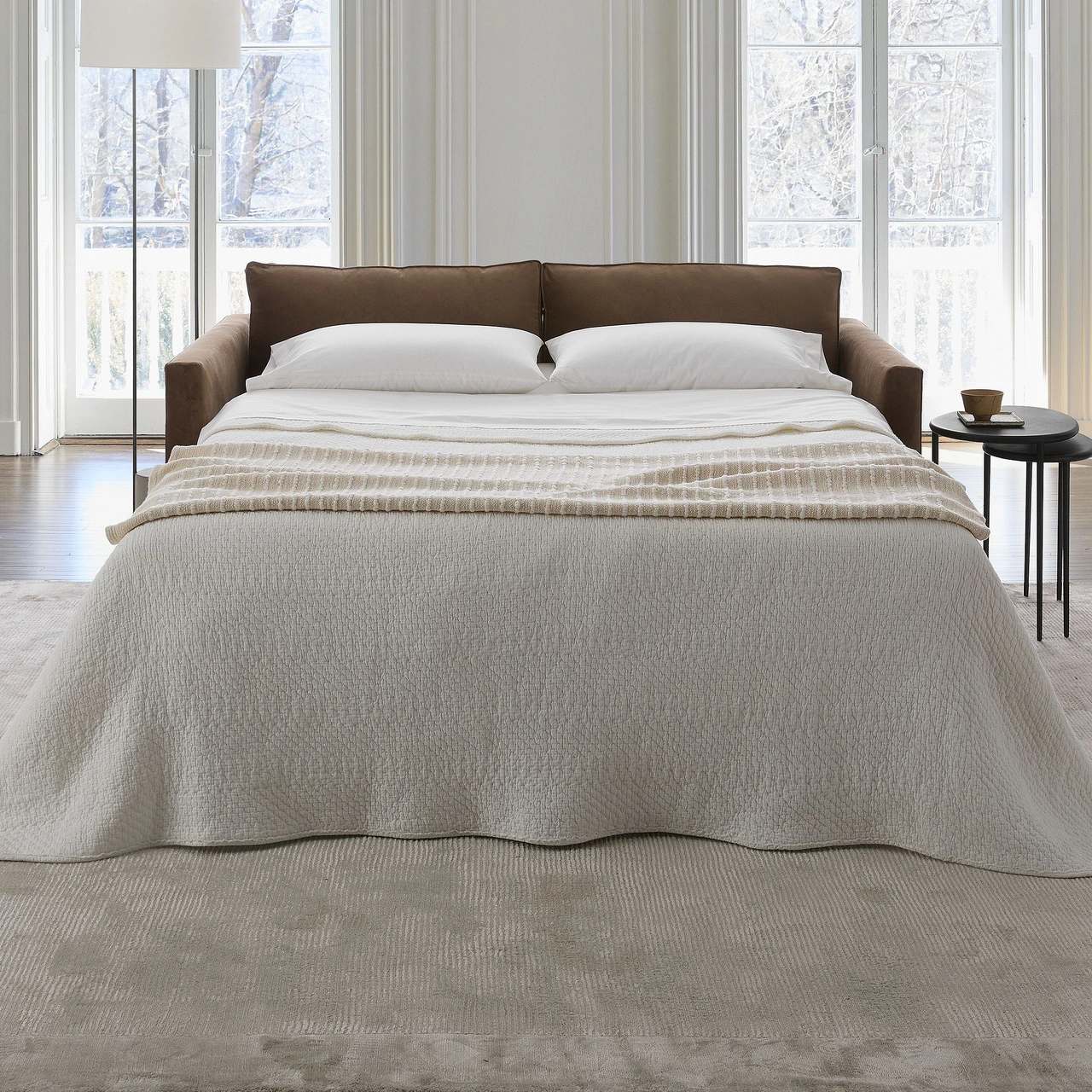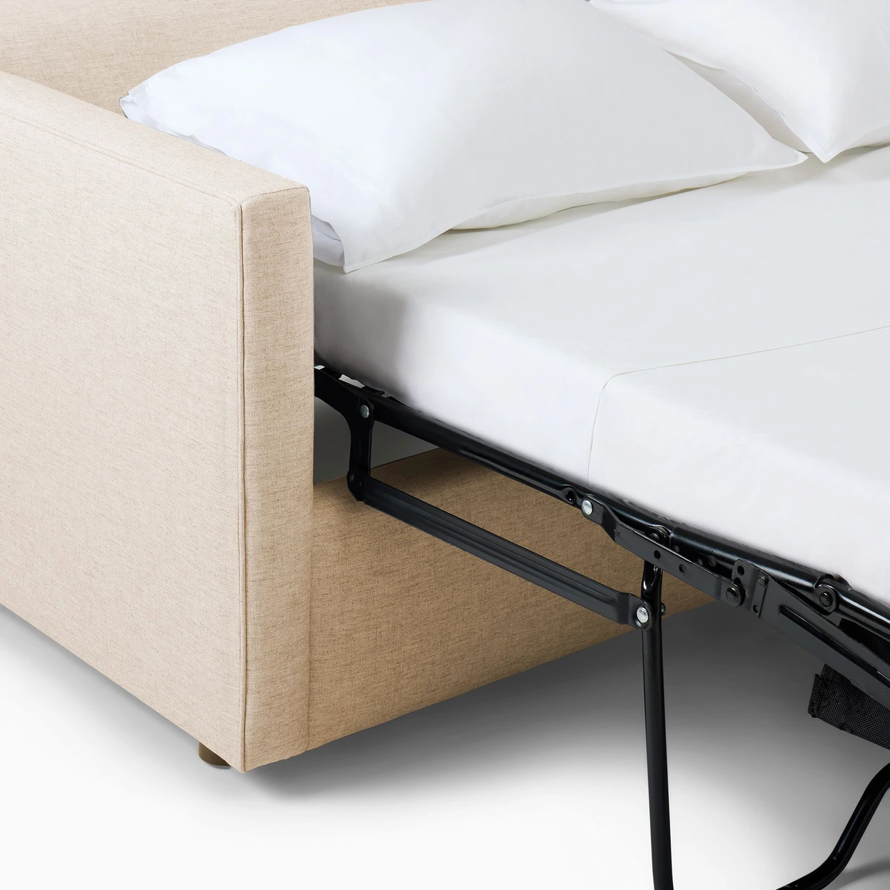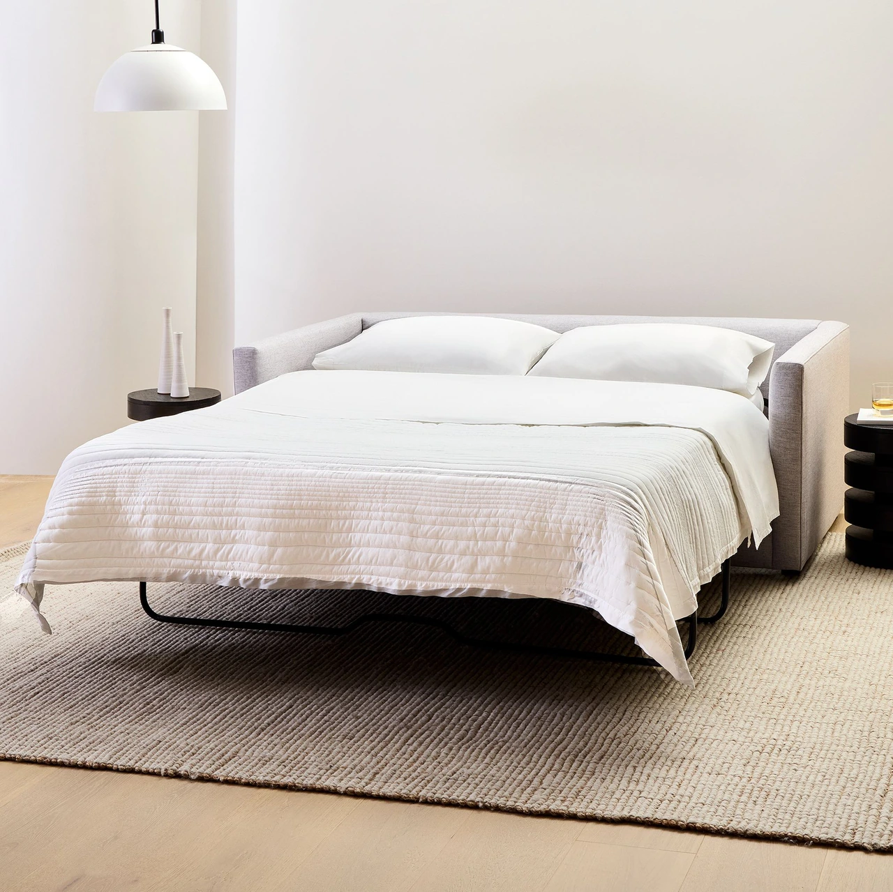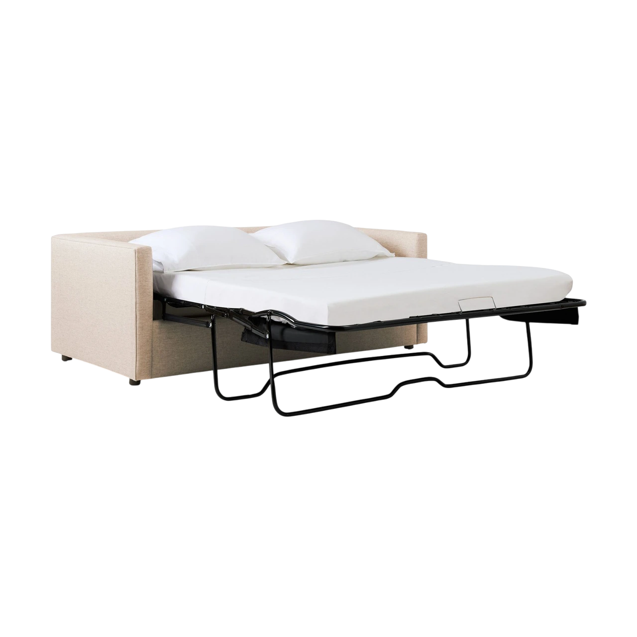 The Harris Queen Sleeper Sofa combines tailored design with hidden functionality. By day, it serves as a comfortable, medium-firm sofa; by night, it opens to reveal a Queen-size gel mattress that contours to the body while regulating temperature for a cooler sleep.