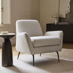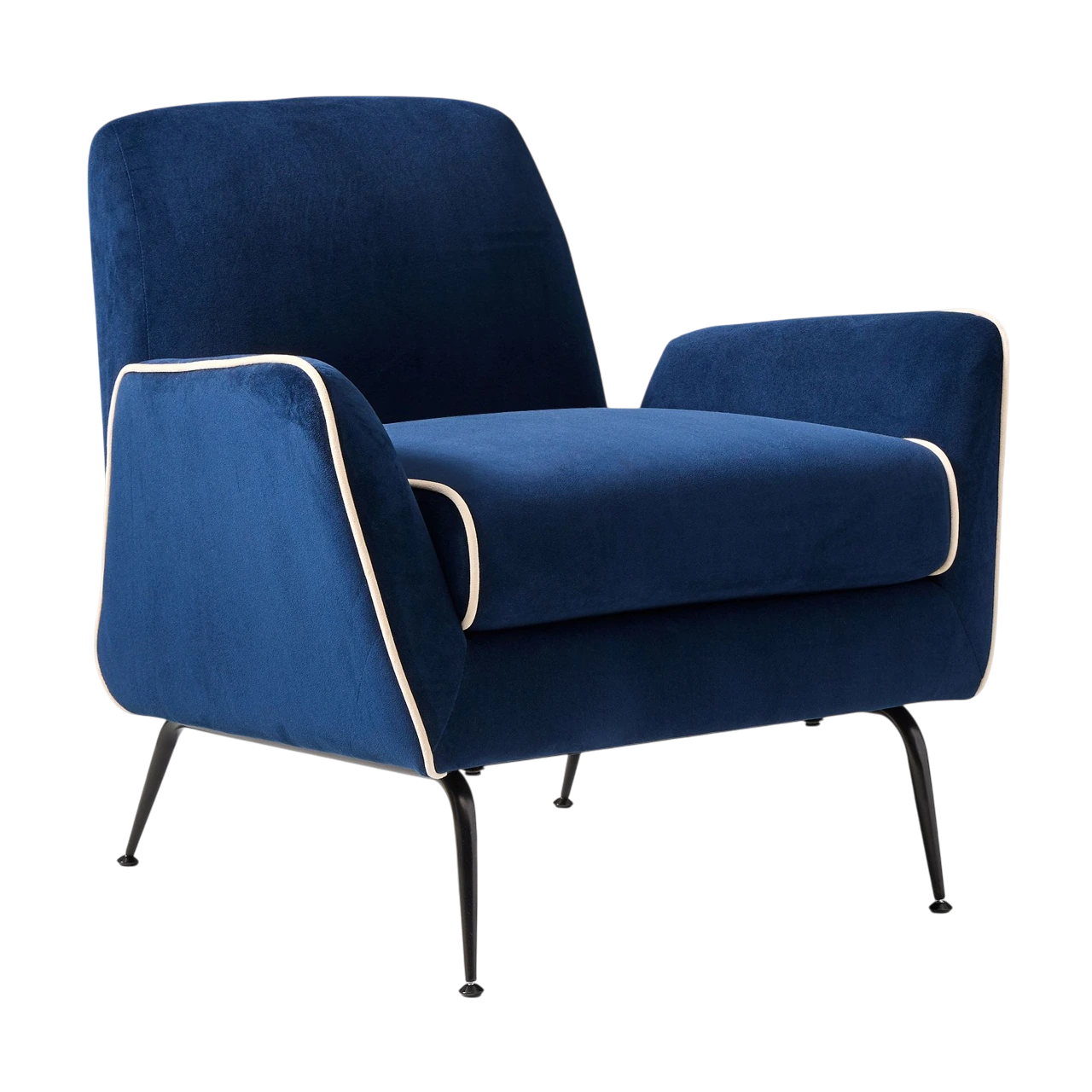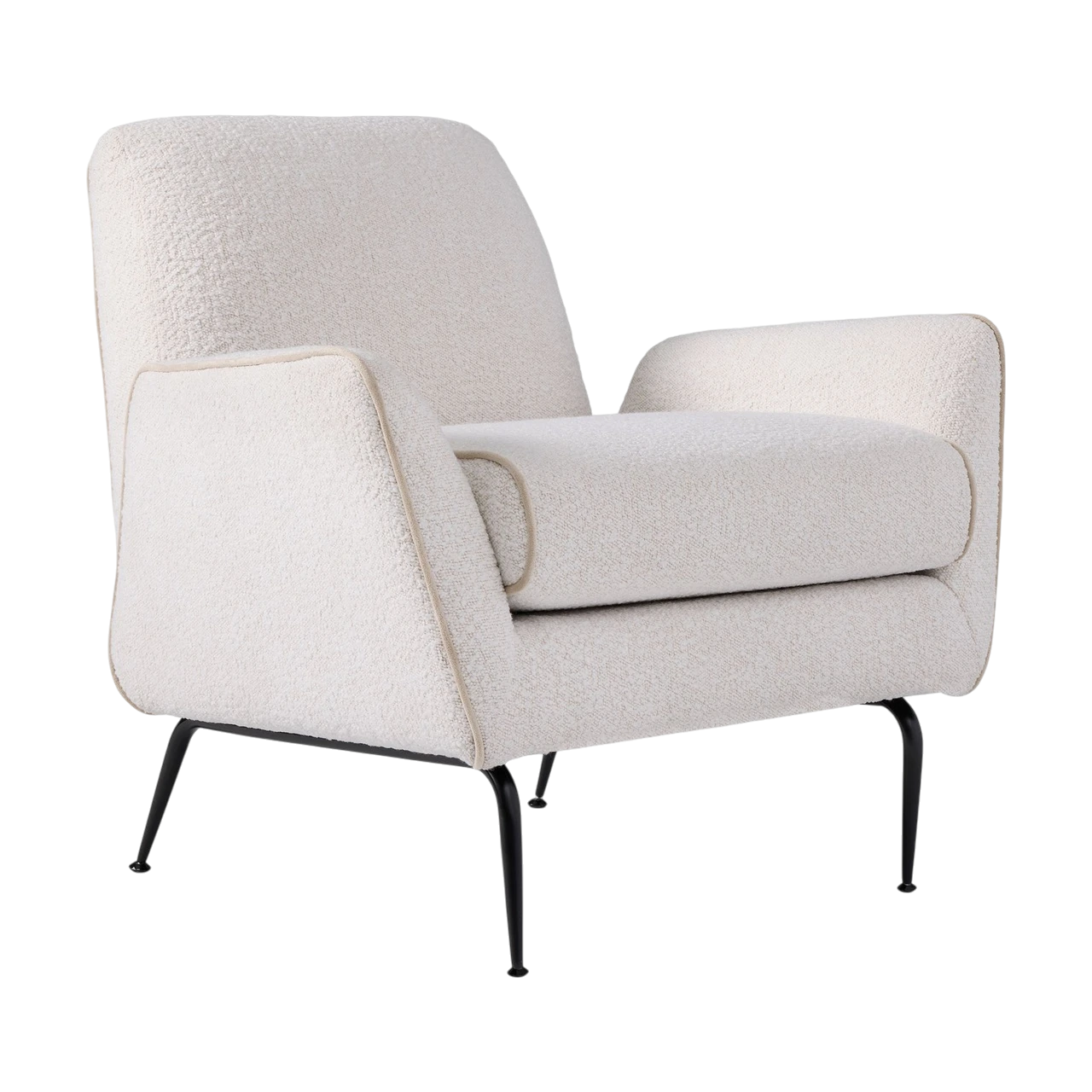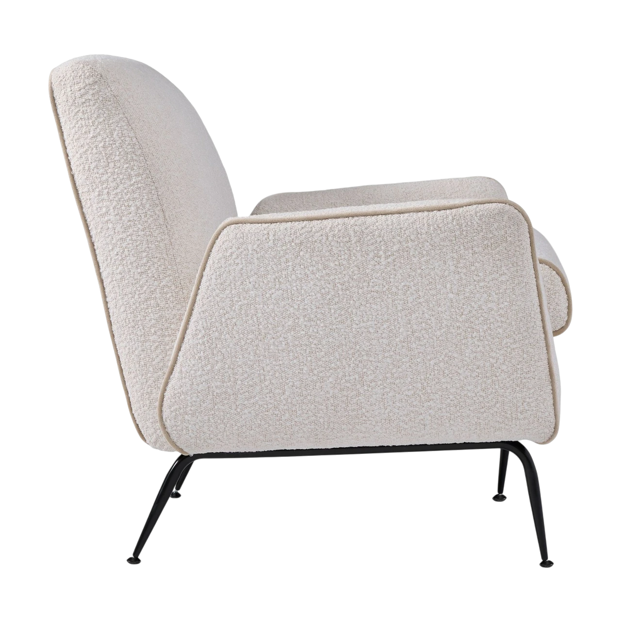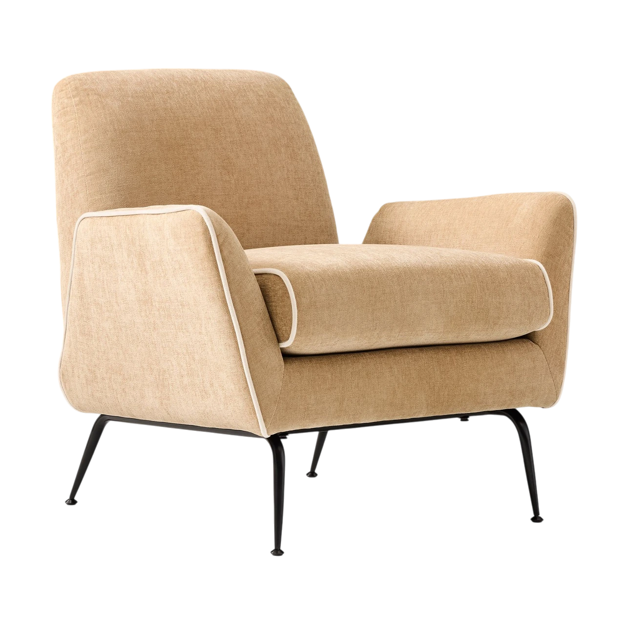 The Kip Flare Arm Chair with Contrast Piping refines mid-century inspiration through clean lines and a distinctive outline. Its subtly flared arms and high back lend it a poised, elegant profile, while the contrast piping emphasizes the chair’s sculptural form and upholstery details.