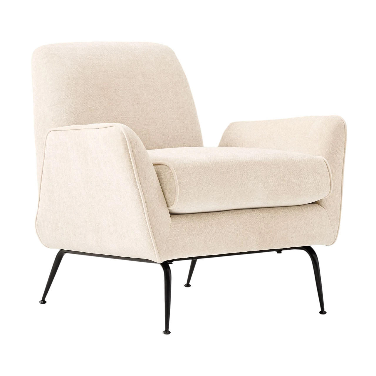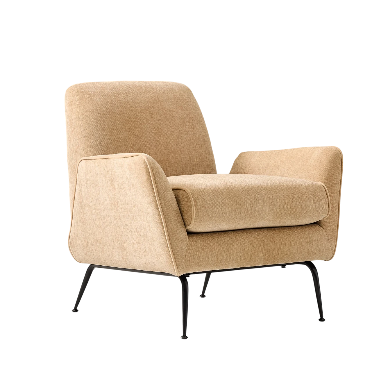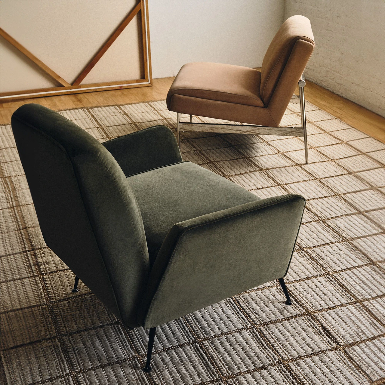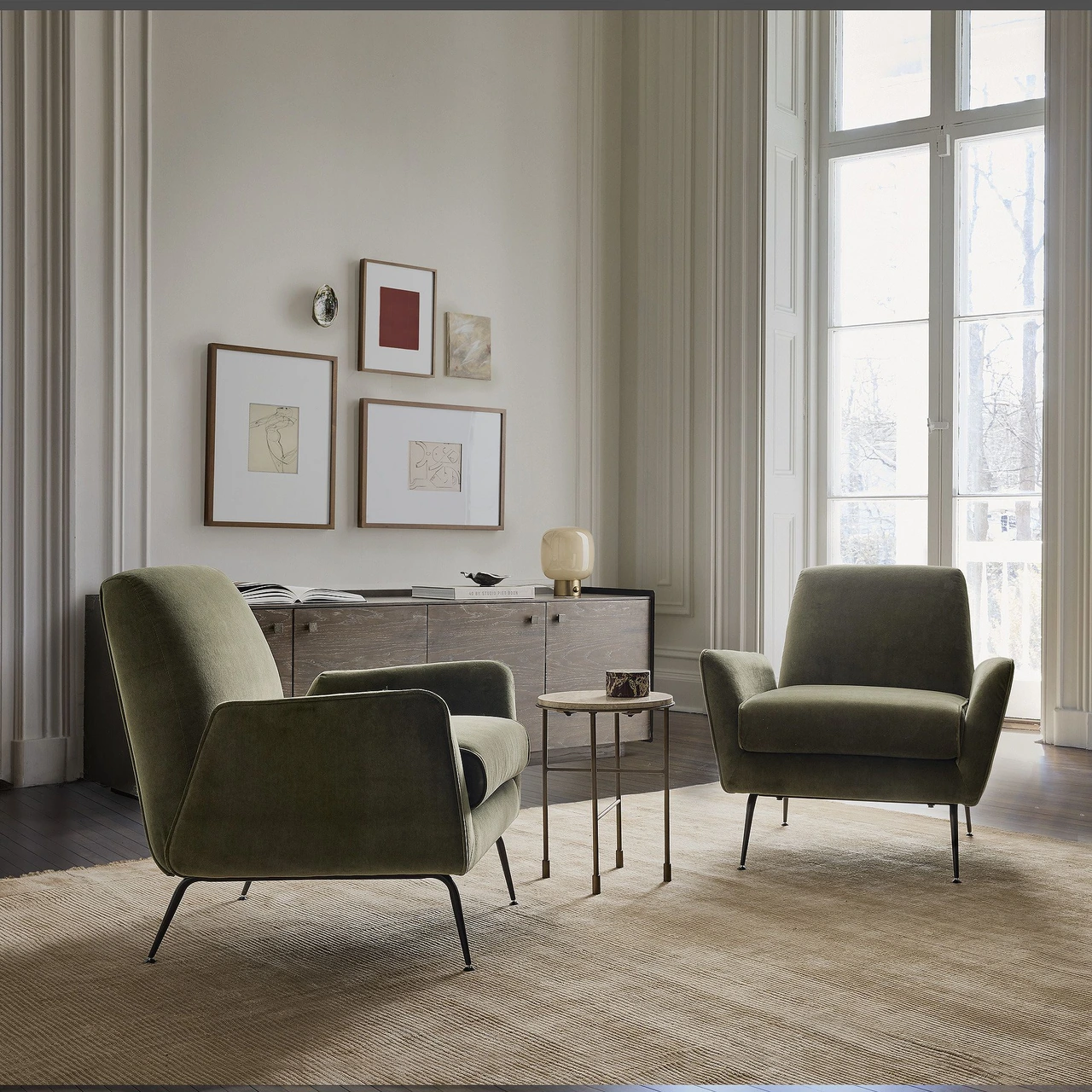 The Kip Flare Arm Chair reinterprets mid-century Italian design with refined proportions and gently flared arms that create an inviting silhouette. Its high back provides comfortable support while maintaining a sleek, sculptural profile suited to both modern and transitional interiors.