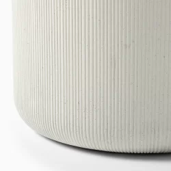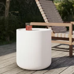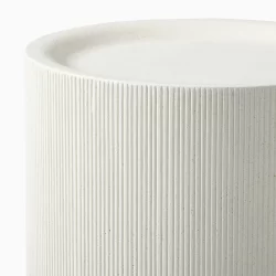 The Kos Side Table combines durable concrete construction with a refined finish. Made from glass fibre reinforced concrete, it offers the strength of stone while remaining lighter in weight for easier placement. Its surface is subtly dished, resting on a textured drum base that adds visual depth.