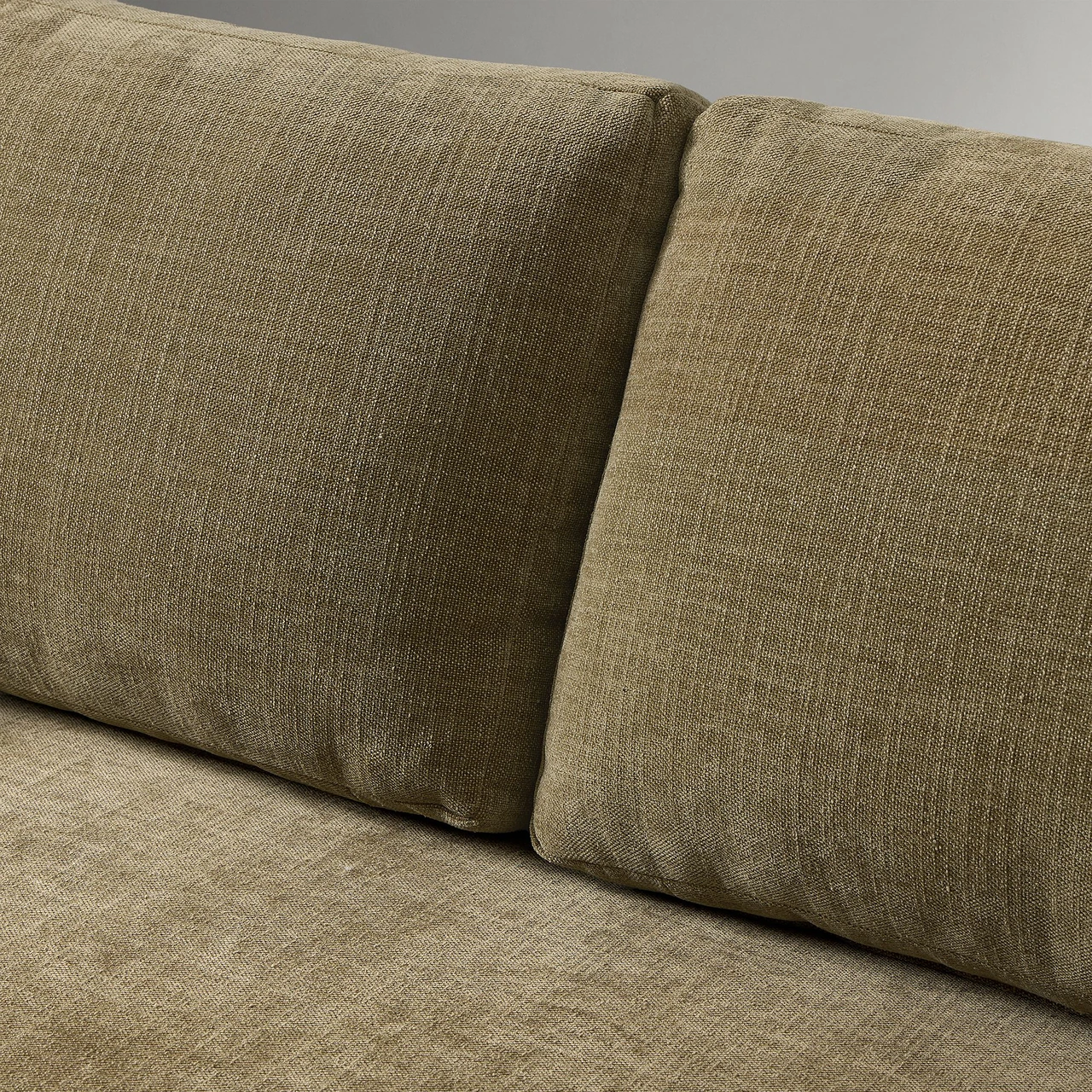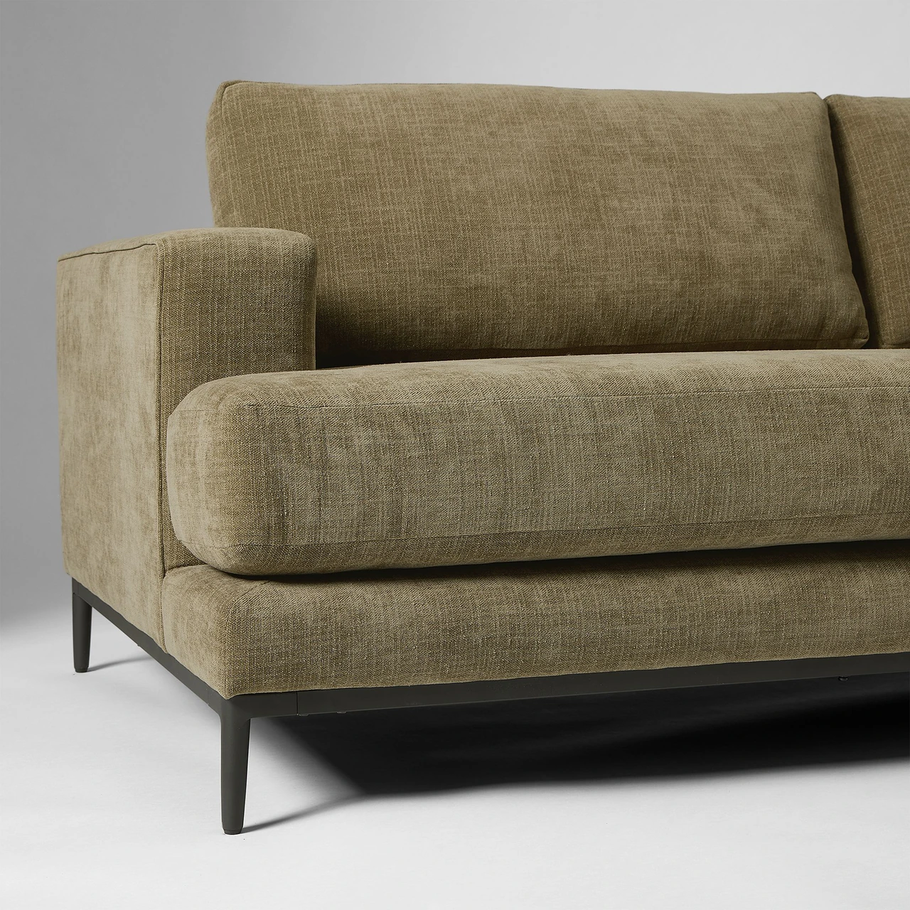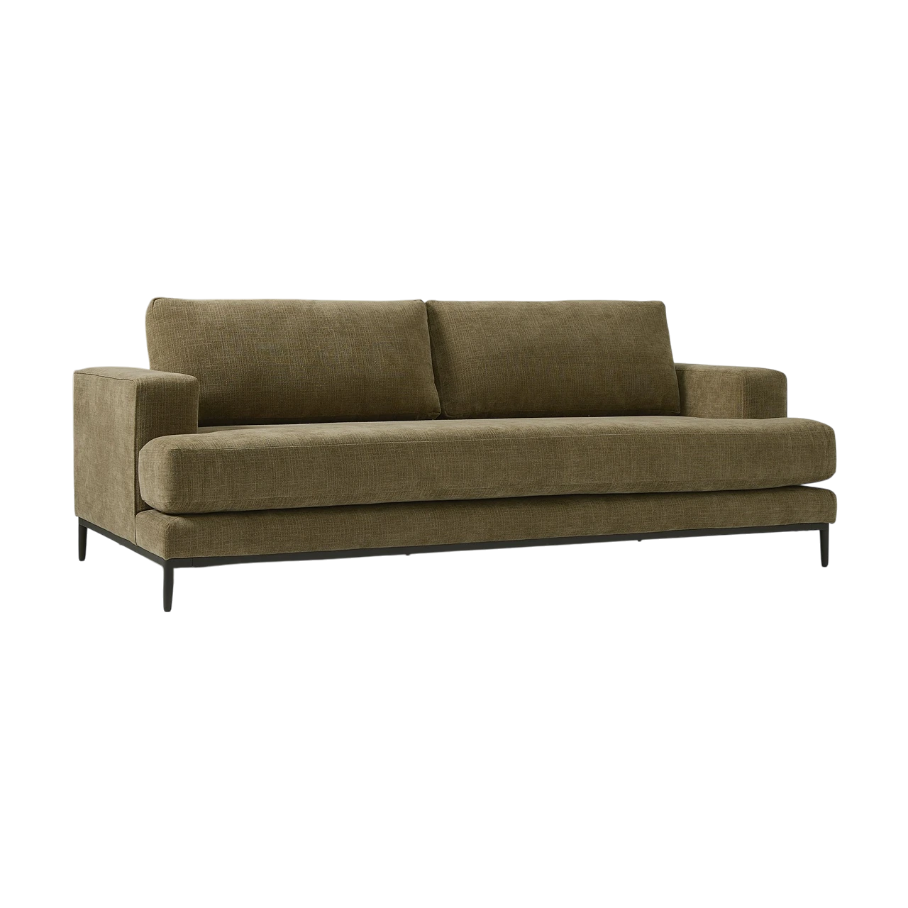 The Landon Sofa features a sleek, loft-inspired design with a long bench seat and slim metal legs that create a clean, elevated look. Its deep seating and tailored form balance modern style with inviting comfort.