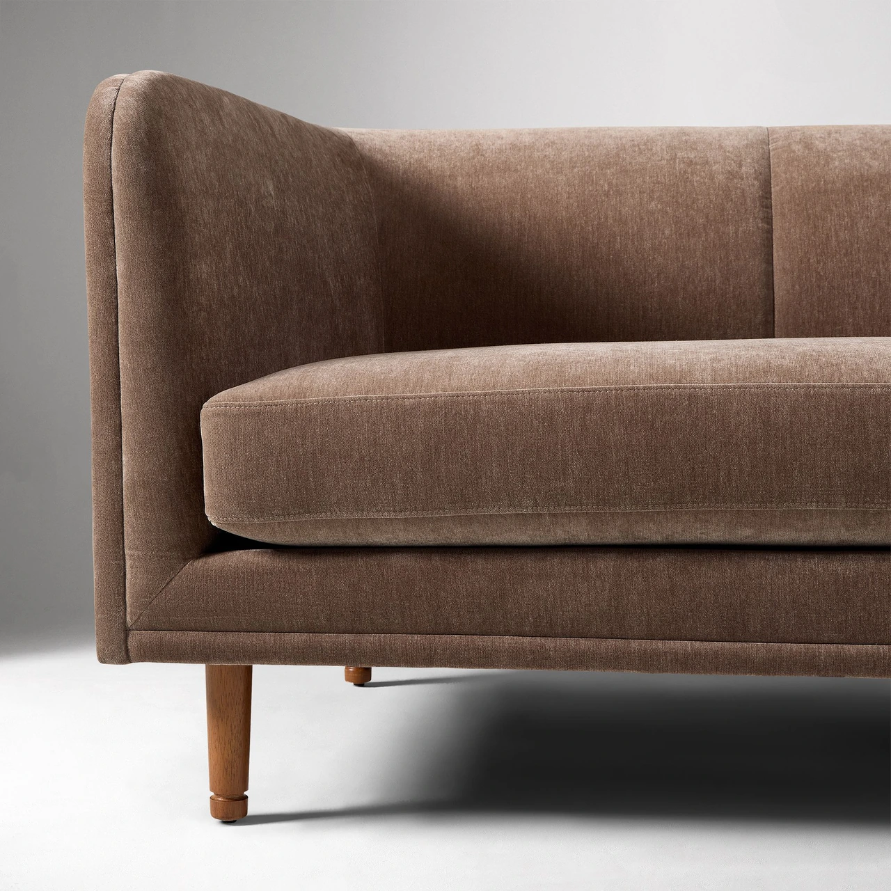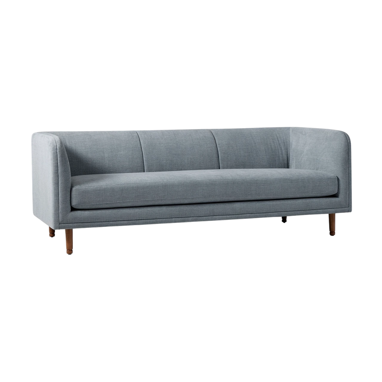 The Marcel Sofa features a retro-inspired silhouette with softly curved arms and back, balanced by slim, lofted legs. Its mid-century influence and tailored detailing bring both character and refinement to modern spaces.