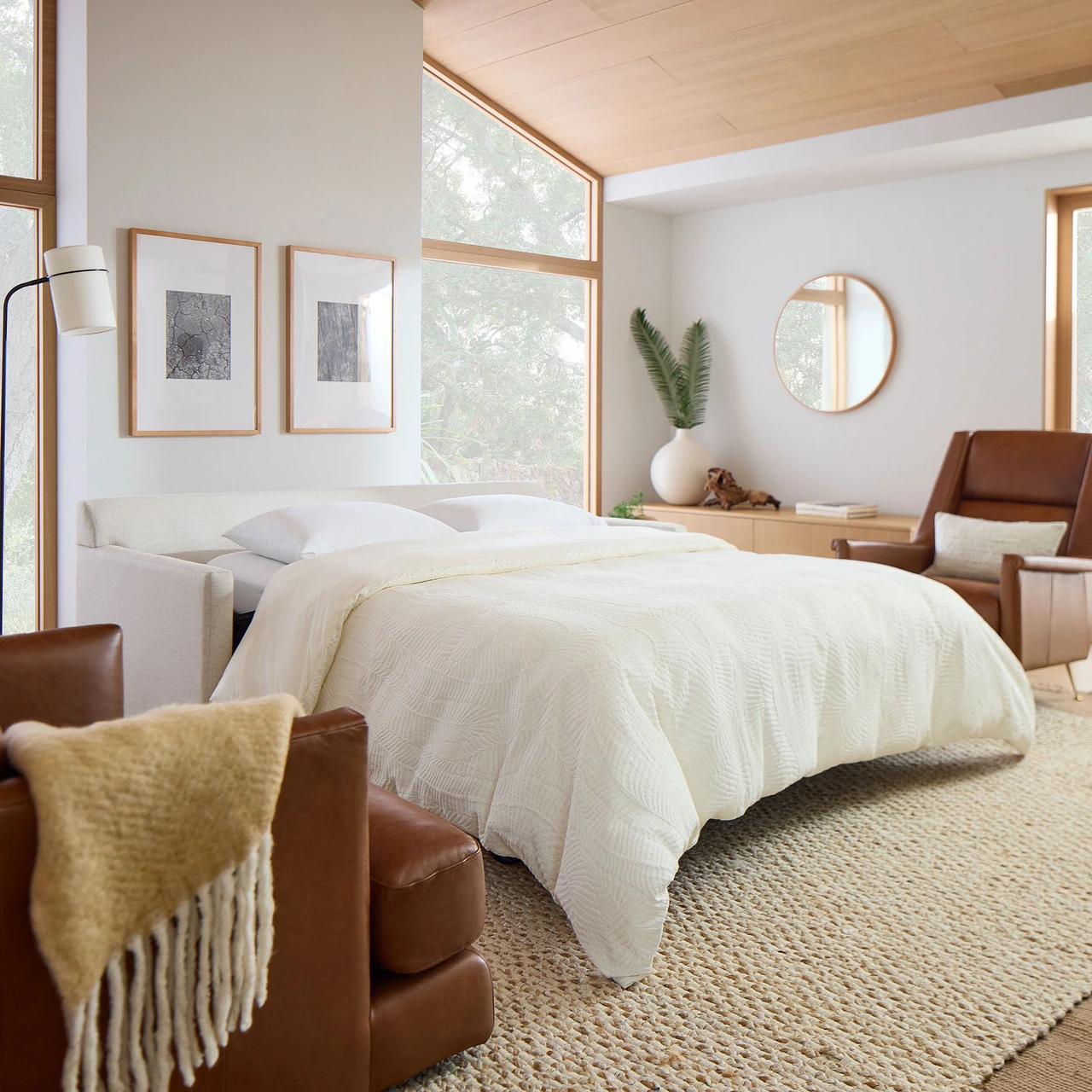 The Marin Sleeper Sofa combines tailored design with hidden functionality, offering a comfortable seat by day and a supportive pull-out bed by night. Its clean silhouette and soft cushions create a refined yet inviting look.