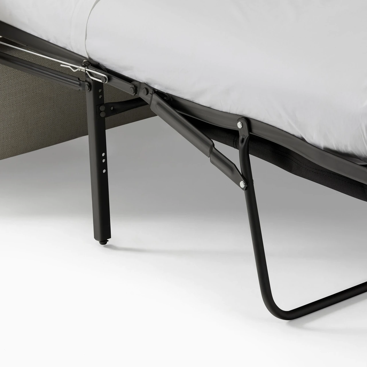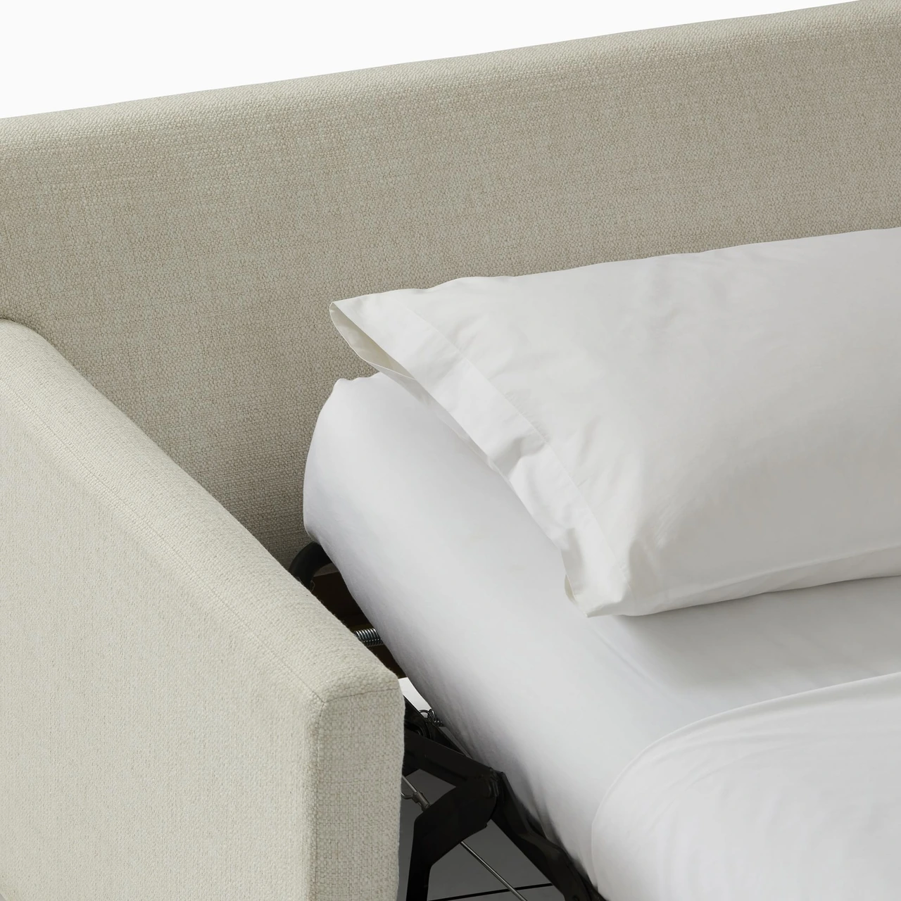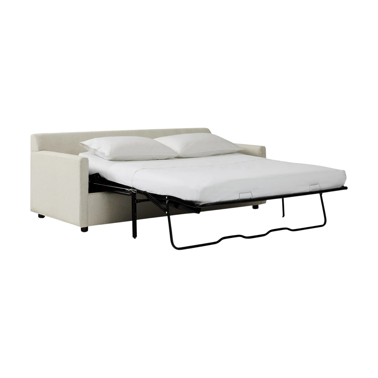 Pull-out sleeper with a two-layer gel-infused memory foam mattress.
