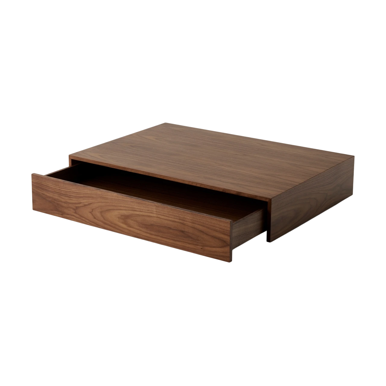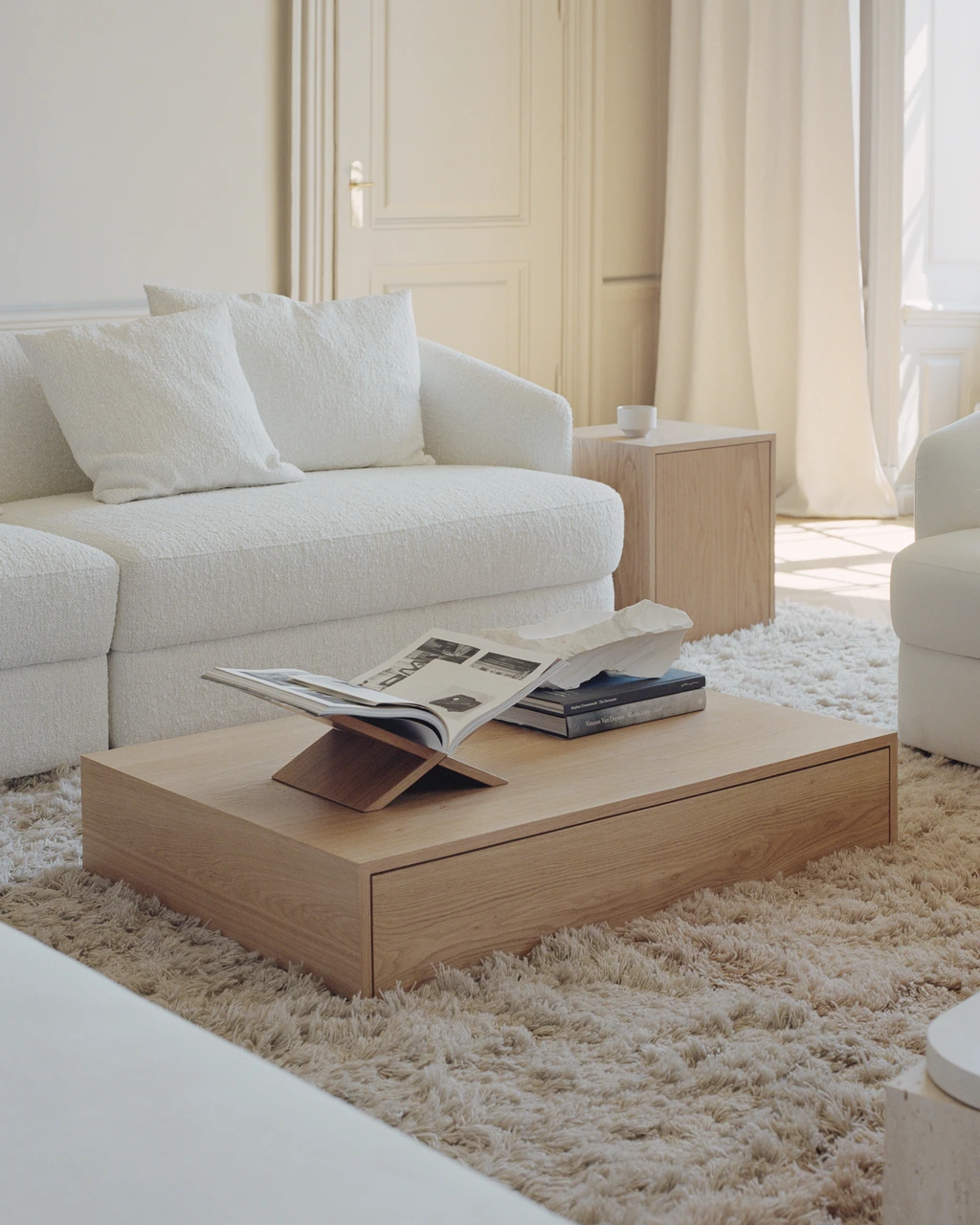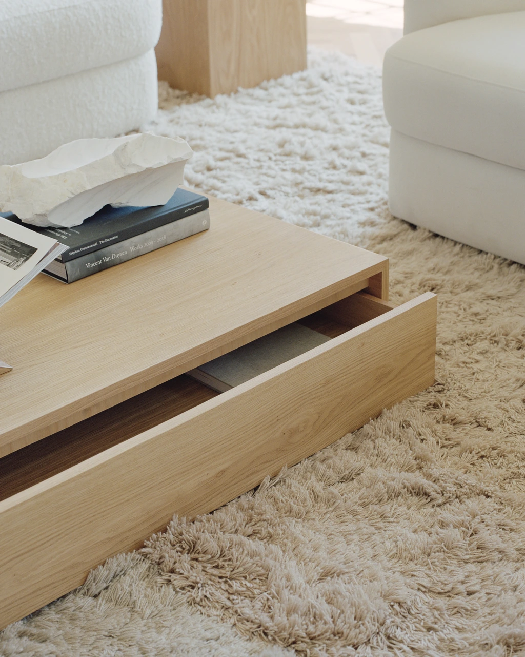A sculptural simplicity and honest palette of materials bring the family together. The table comes in three finishes, walnut, natural oak, and black-stained oak, with an optional drawer available in both the walnut and black versions.