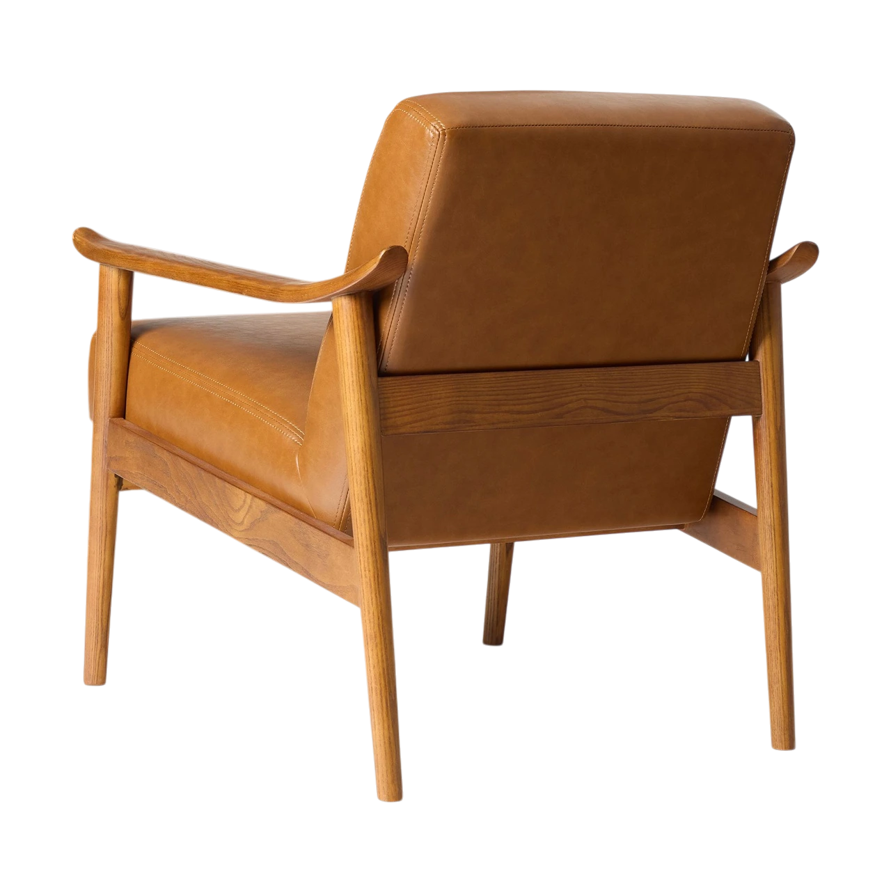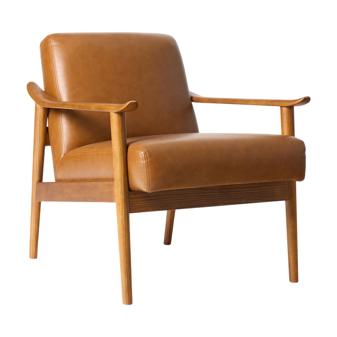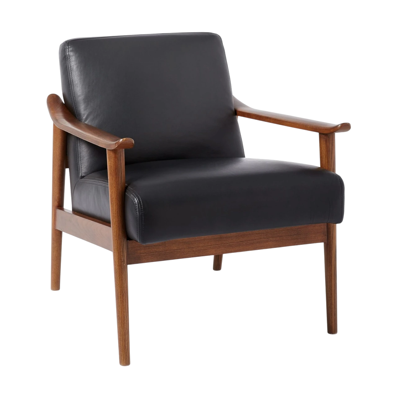 The Mid-Century Leather Show Wood Chair combines timeless design with everyday comfort. Its exposed ash wood frame, gently angled legs, and tailored seat recall classic mid-century craftsmanship, while the option of rich top-grain or vegan leather upholstery adds warmth and refinement.
