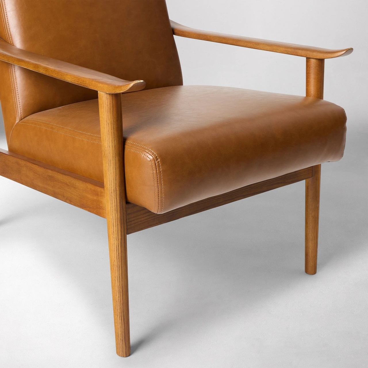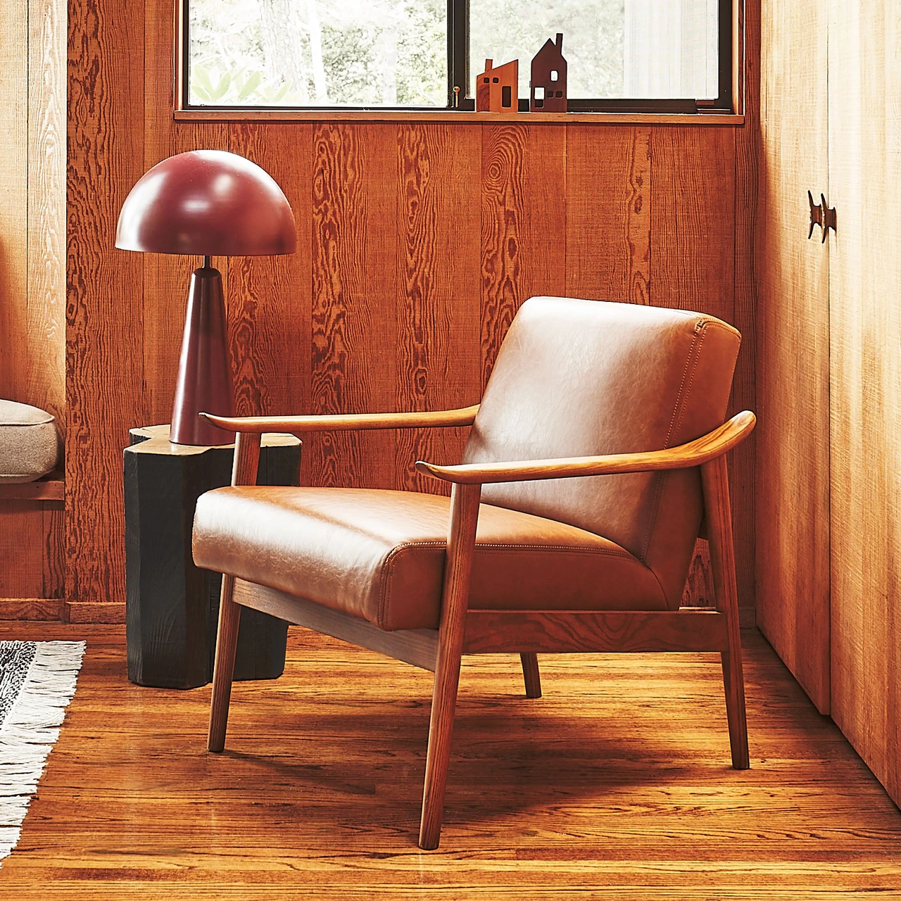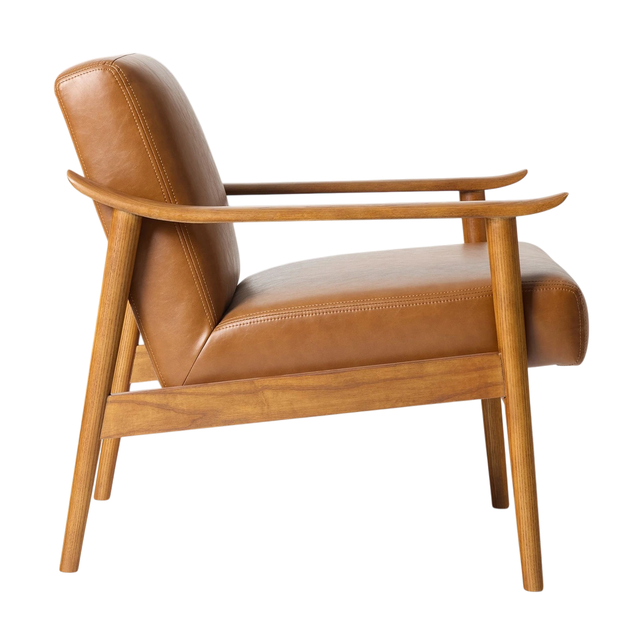 The Mid-Century Leather Show Wood Chair combines timeless design with everyday comfort. Its exposed ash wood frame, gently angled legs, and tailored seat recall classic mid-century craftsmanship, while the option of rich top-grain or vegan leather upholstery adds warmth and refinement.