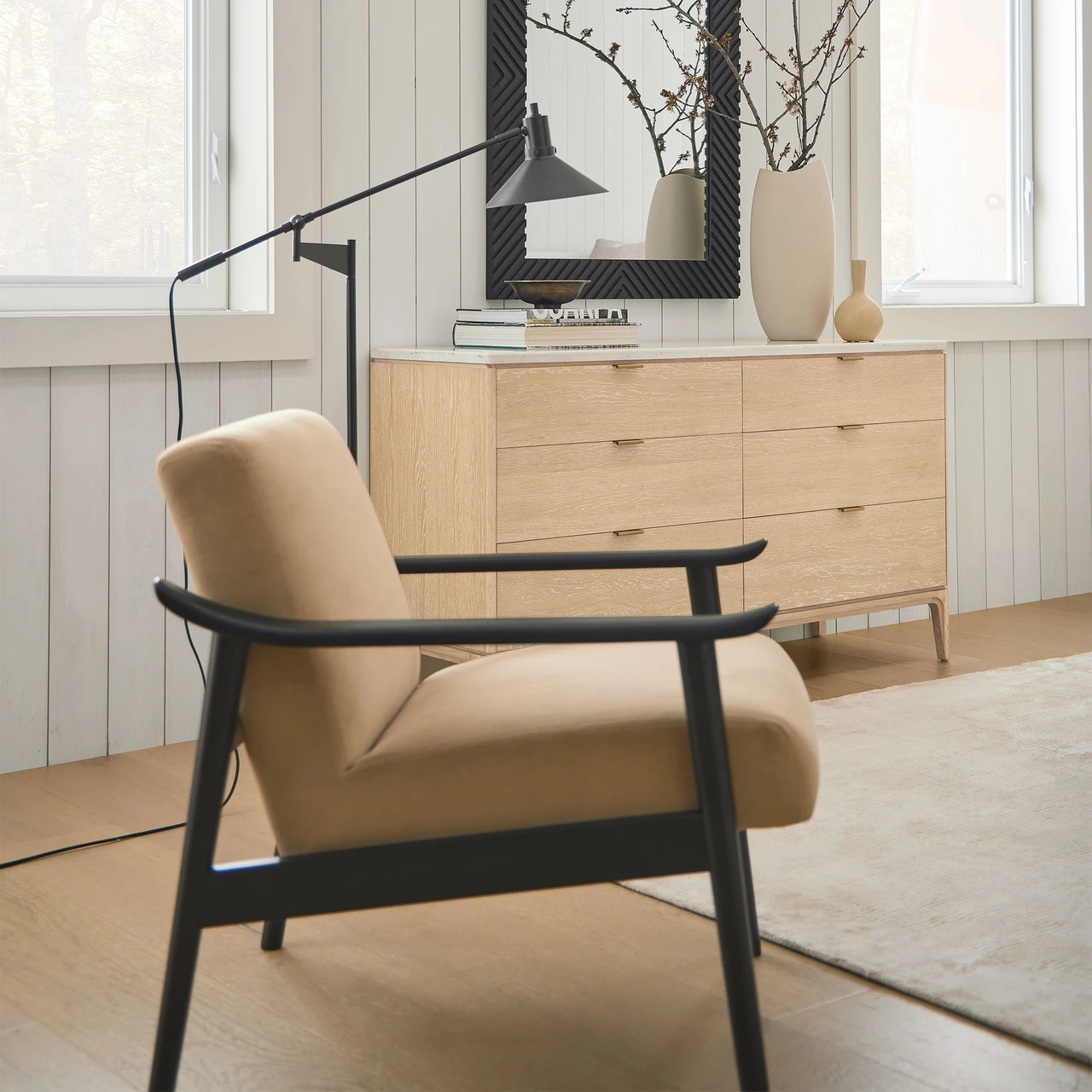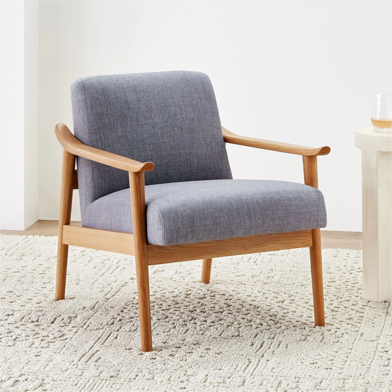 Crafted with solid ash wood arms and legs and an engineered wood seat and back. |
