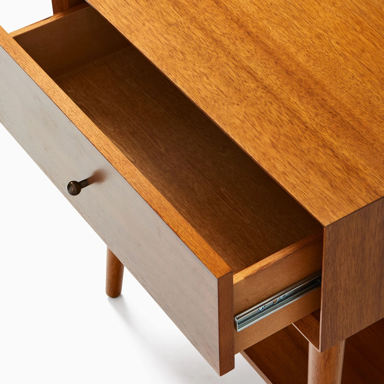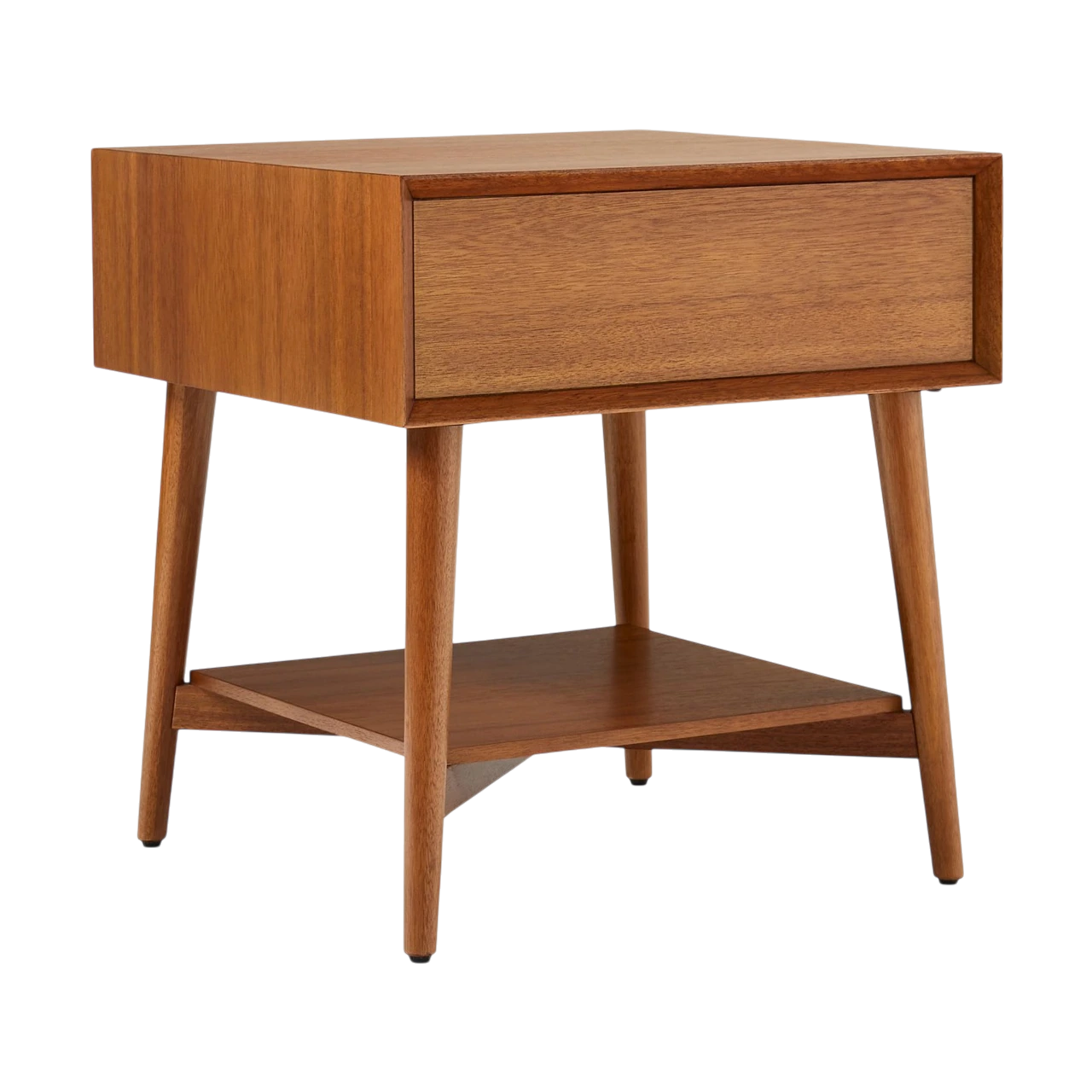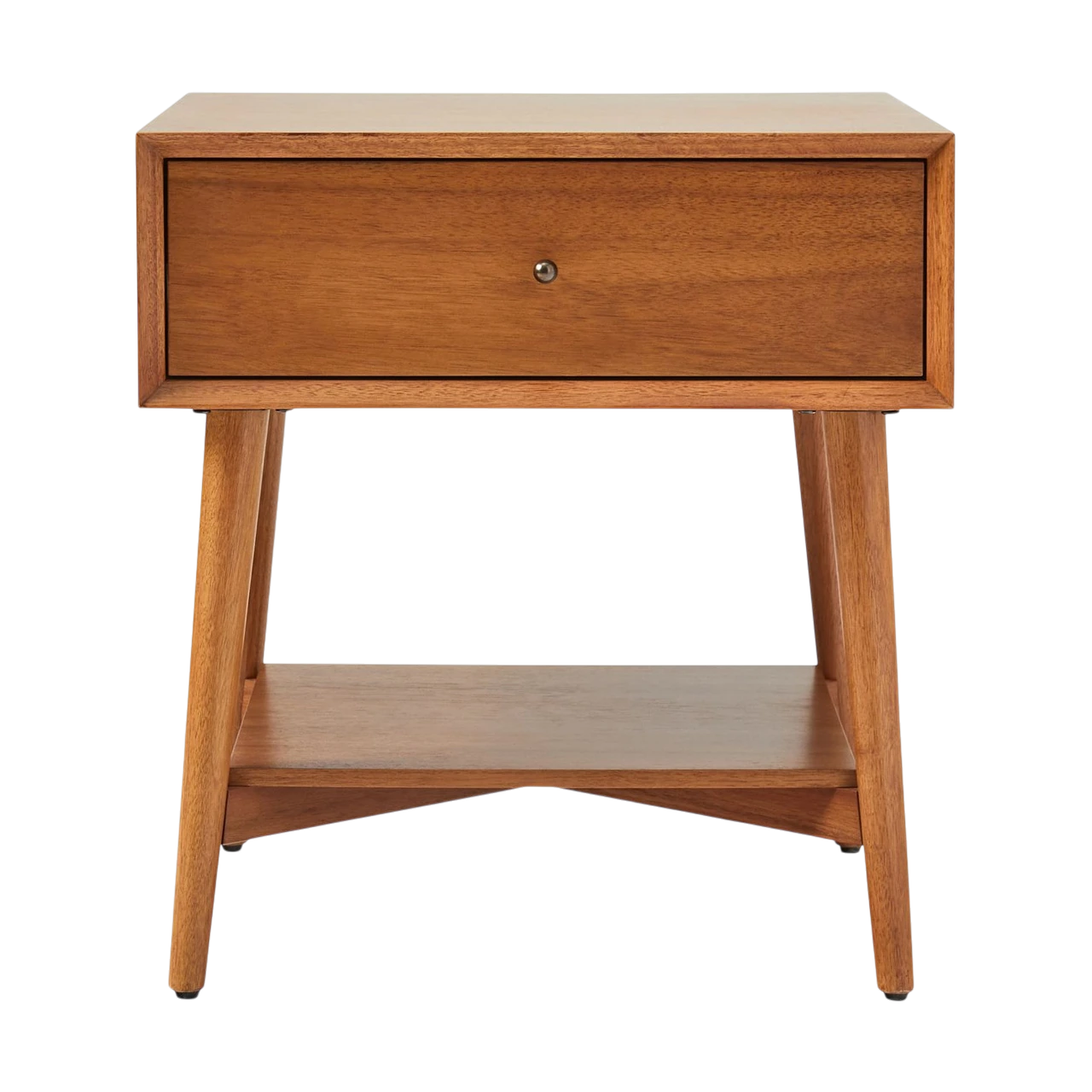 The Mid-Century Side Table offers a blend of storage and display within a compact form. Built from solid eucalyptus and acacia veneer, it is kiln-dried for durability and finished in Acorn to highlight the natural warmth of the wood.