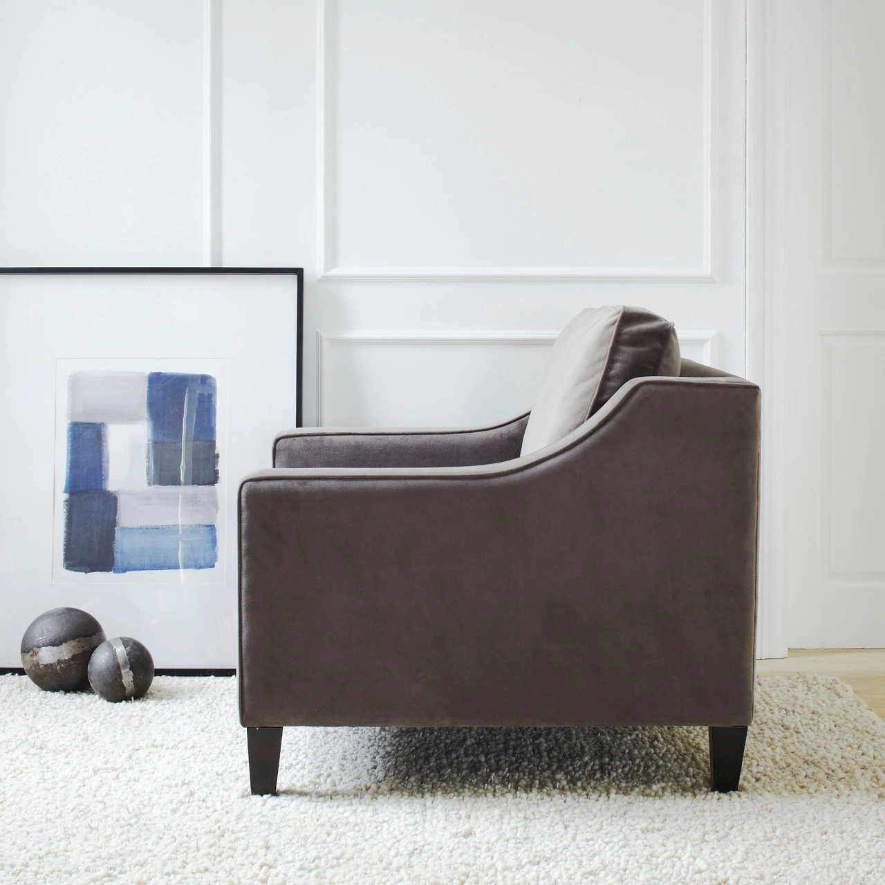 The Paidge Chair offers a modern interpretation of a classic lounge shape. Its gracefully curved arms and neatly welted seams bring refined structure to a familiar, comfortable form. The clean lines and tailored upholstery lend the chair a balanced look that fits seamlessly into both traditional and contemporary interiors.