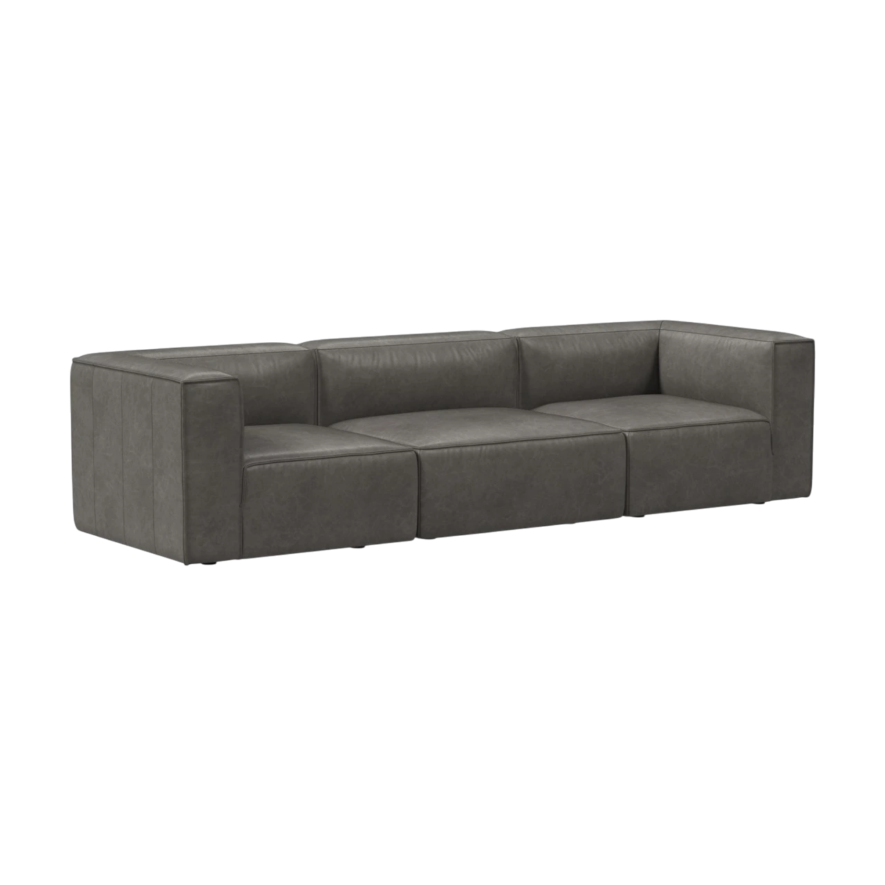 The Remi Leather Modular Sofa offers a streamlined, contemporary form with generous proportions and a grounded silhouette.