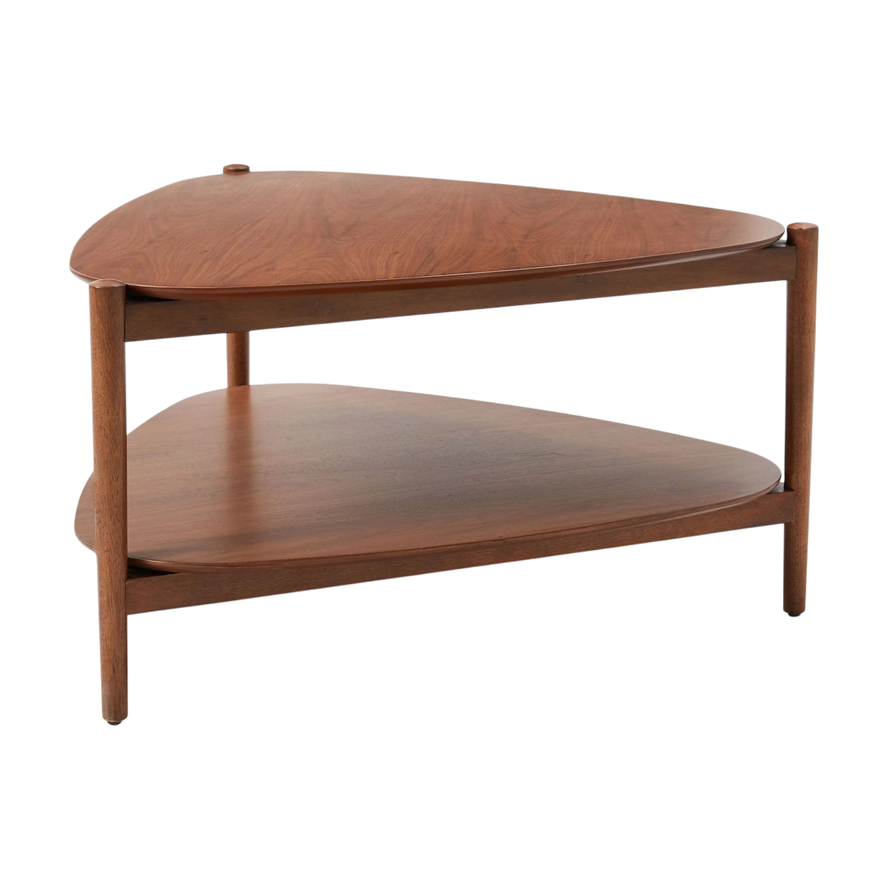 The Retro Tripod Coffee Table offers a playful take on mid-century design with its gently curved, three-pointed form. Its compact shape makes it ideal for smaller spaces while maintaining a generous surface area.