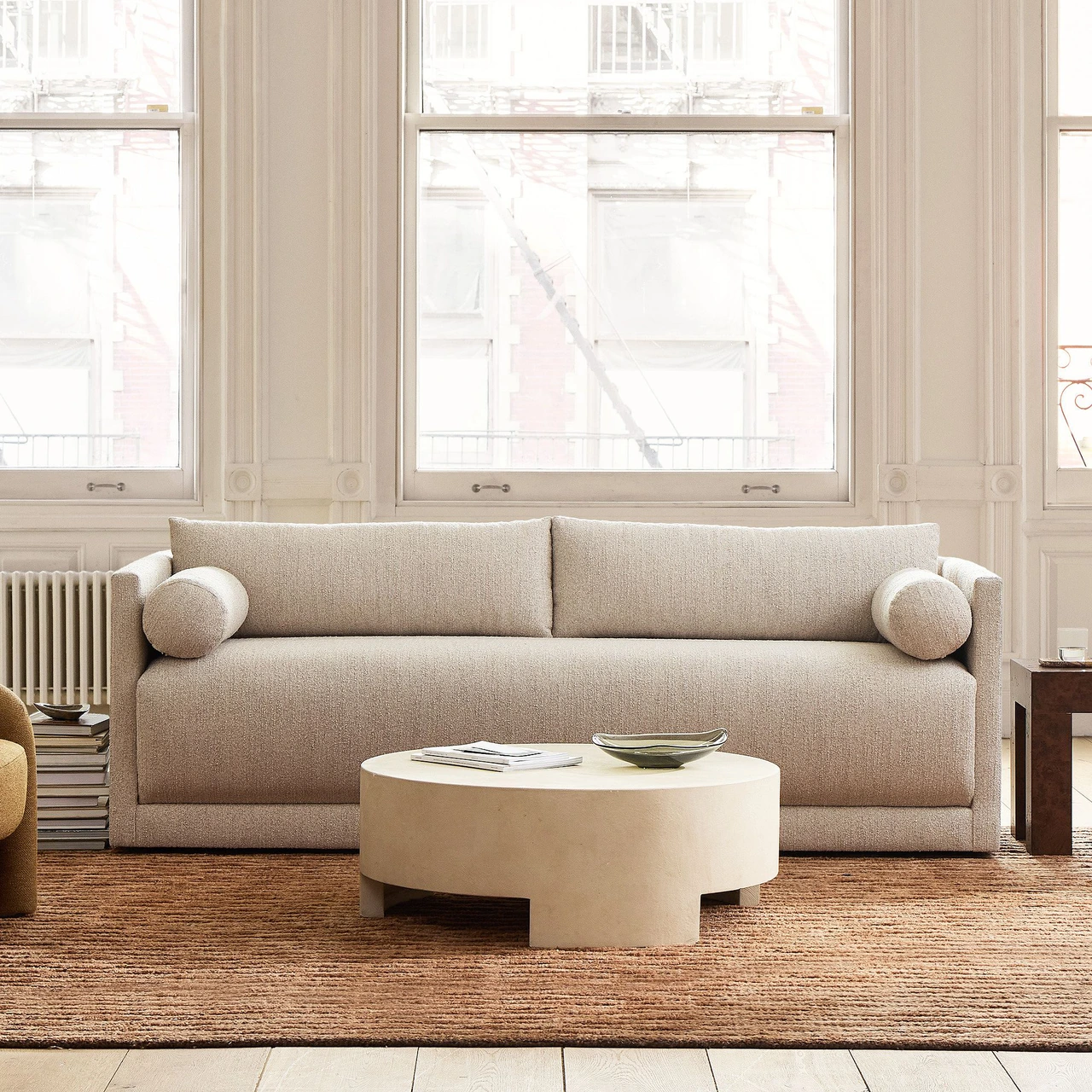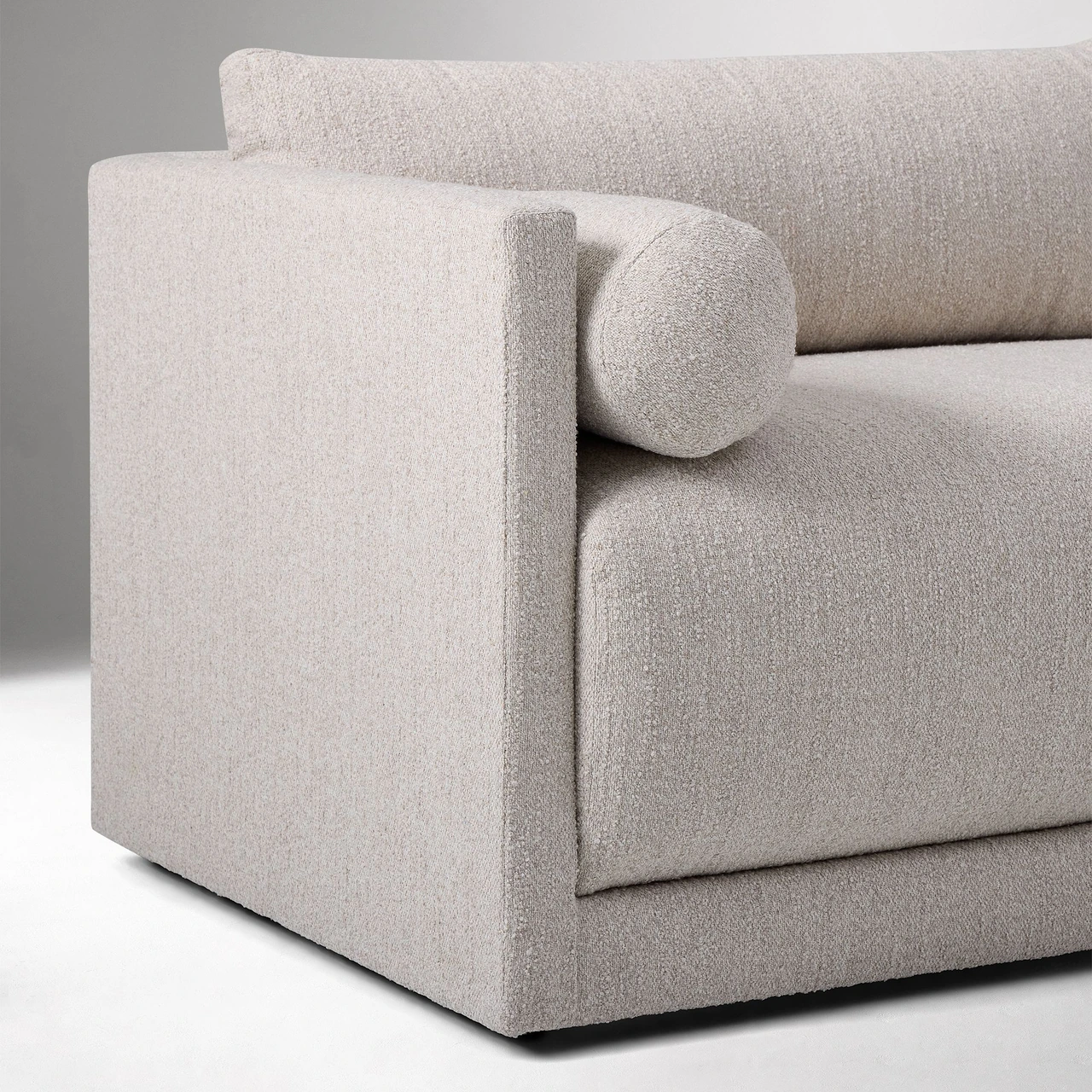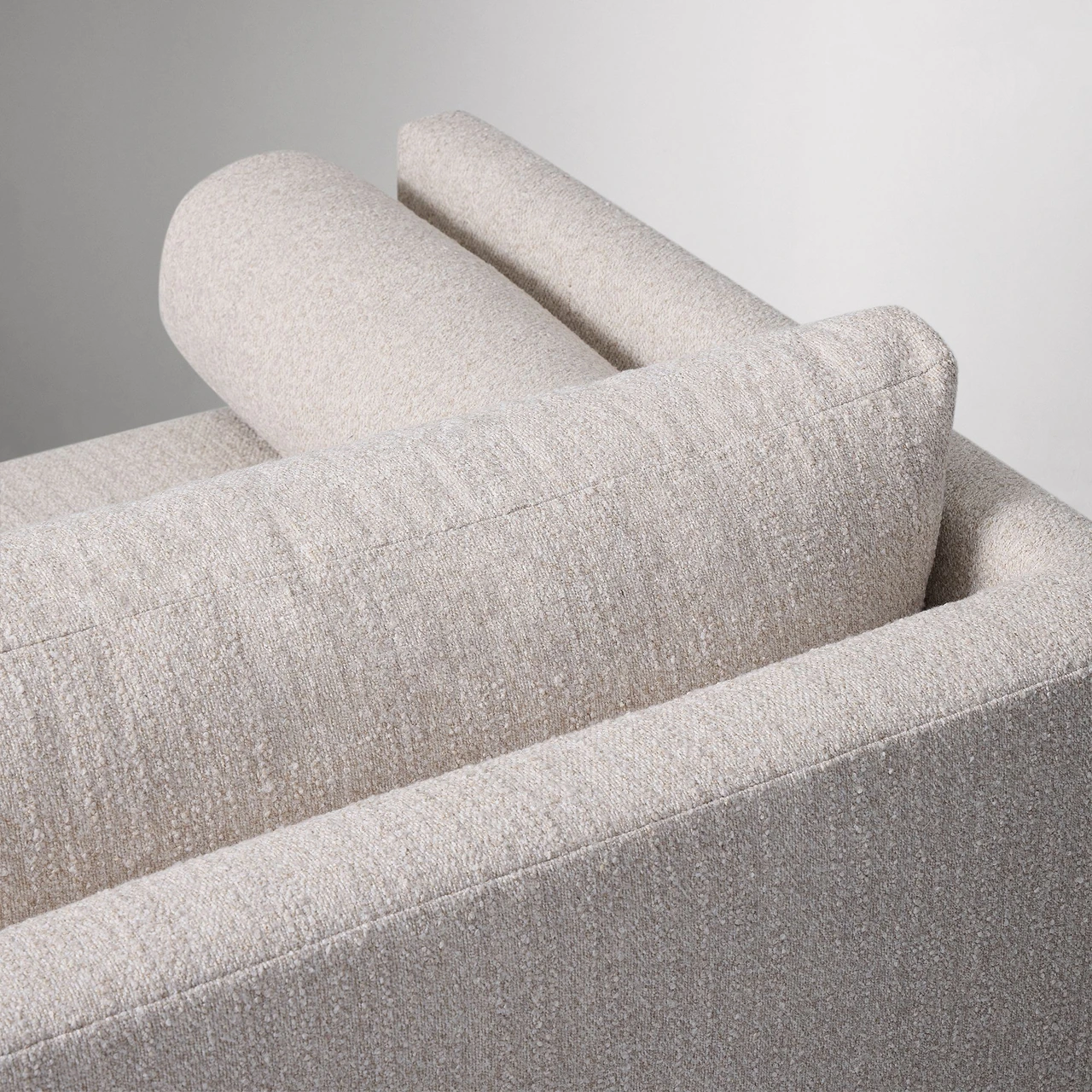 The Riggins Sofa combines refined simplicity with comfortable proportions, offering a relaxed yet structured seat. Its wide single cushion and matching bolsters give it a tailored appearance suited to contemporary interiors.