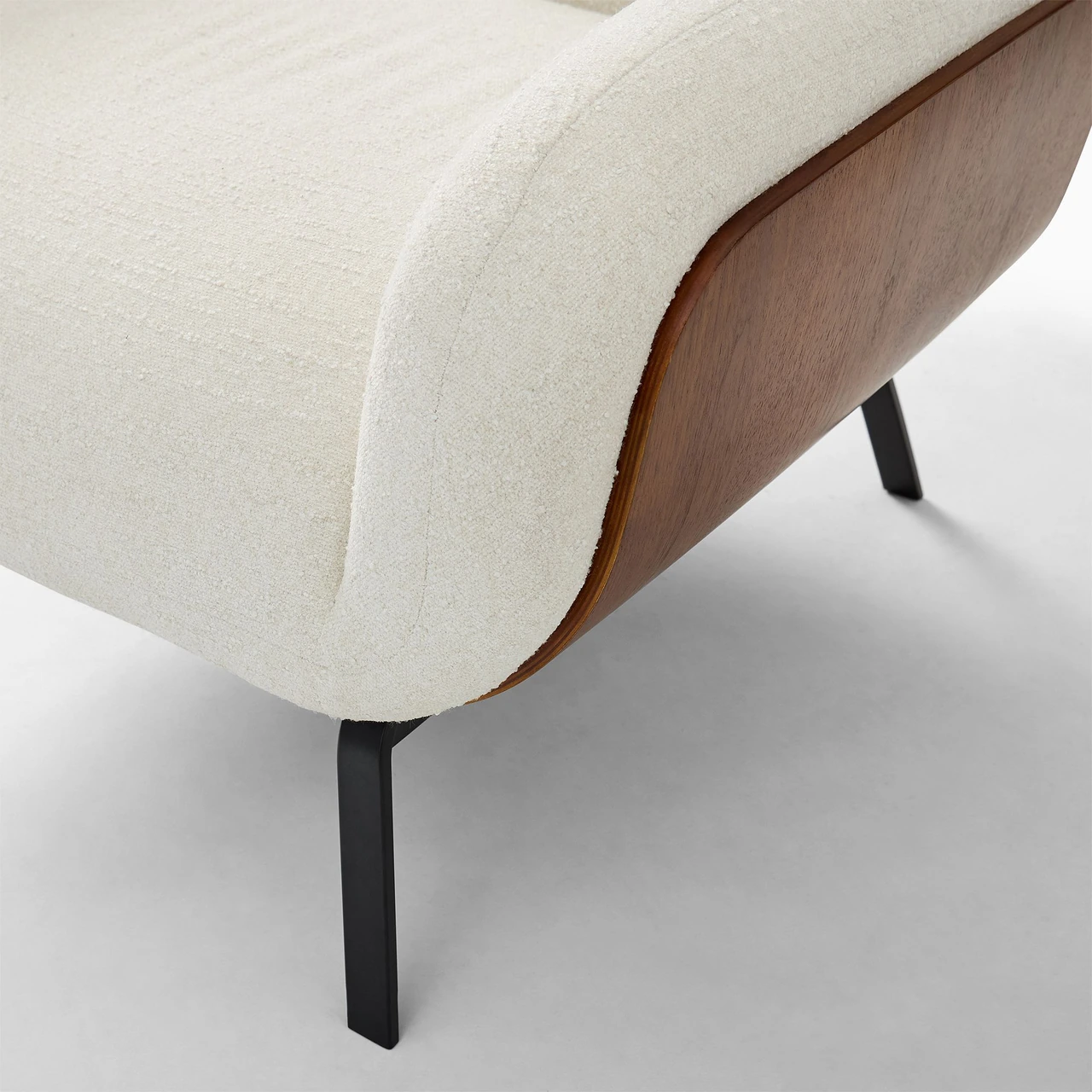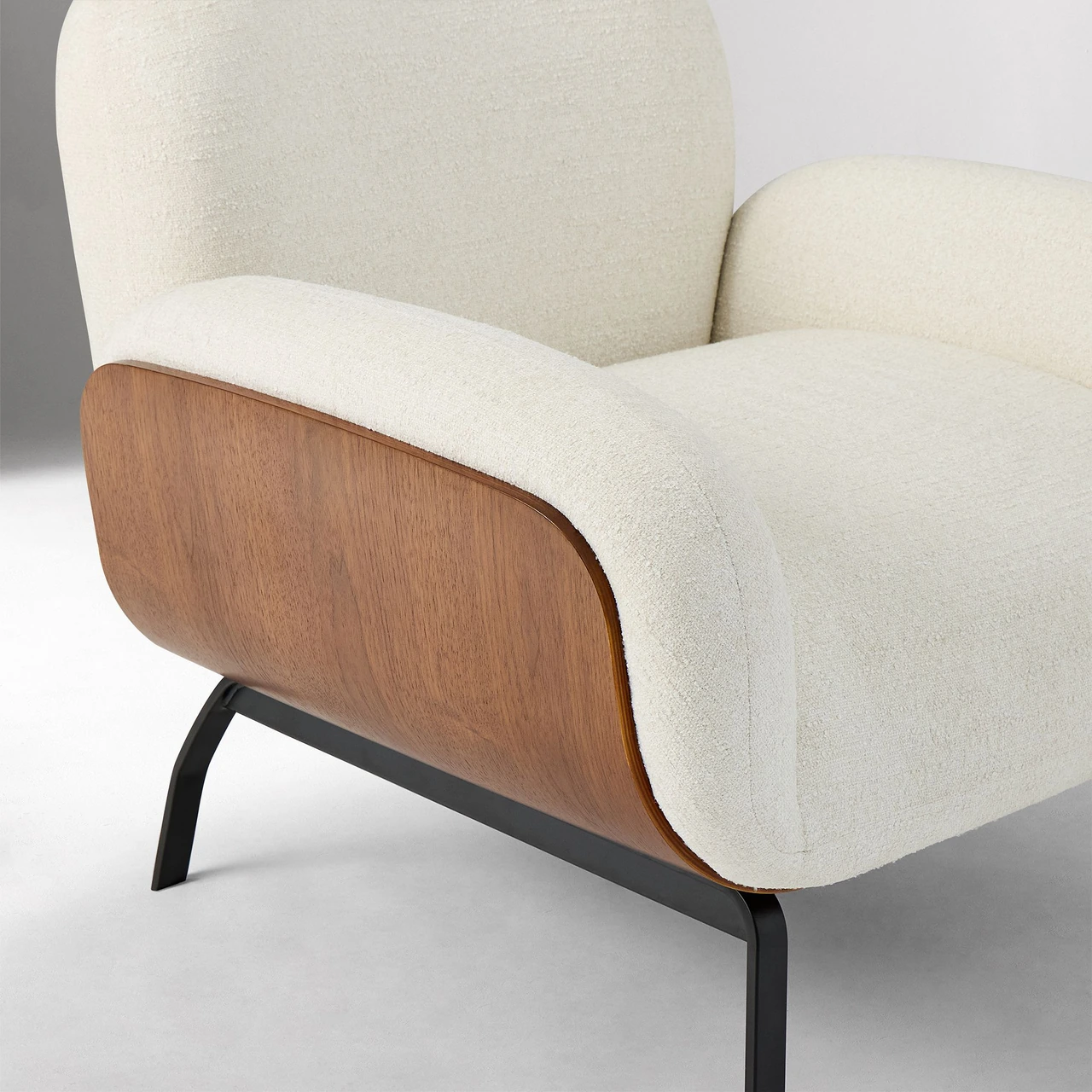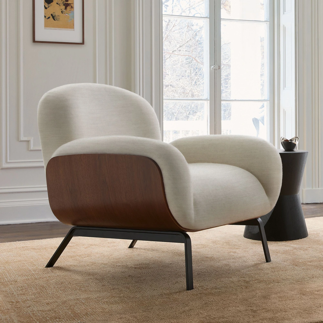 Crafted with a walnut veneer and bentwood frame for a sculptural form.