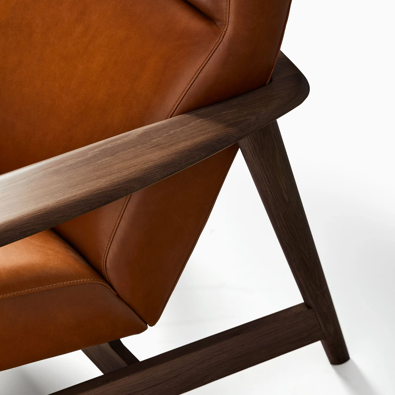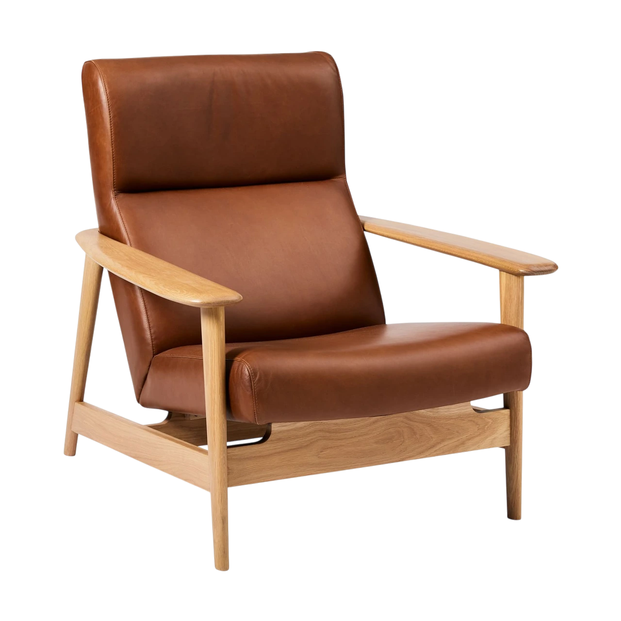 Available in luxurious Saddle, Sierra, Nubuck, or Vegan leathers, this statement piece embodies mid-century sophistication while providing everyday comfort. Ideal for living rooms, offices, or reading nooks, it’s a durable, design-forward investment built to last.