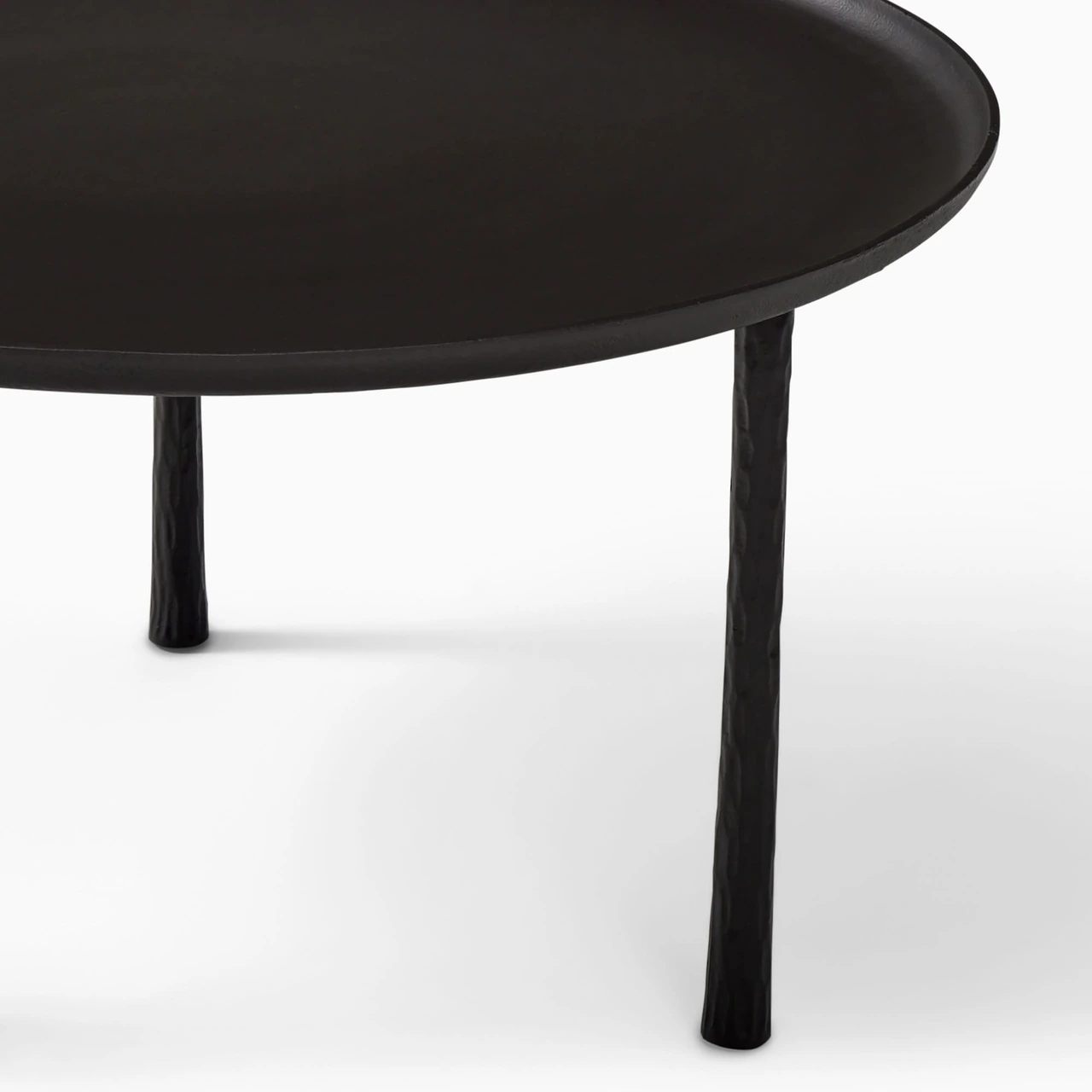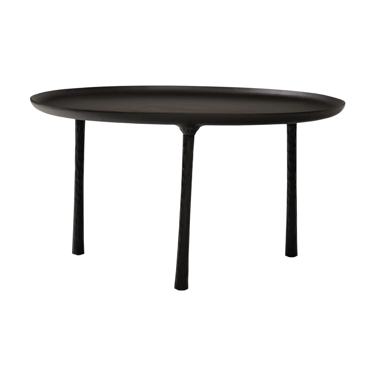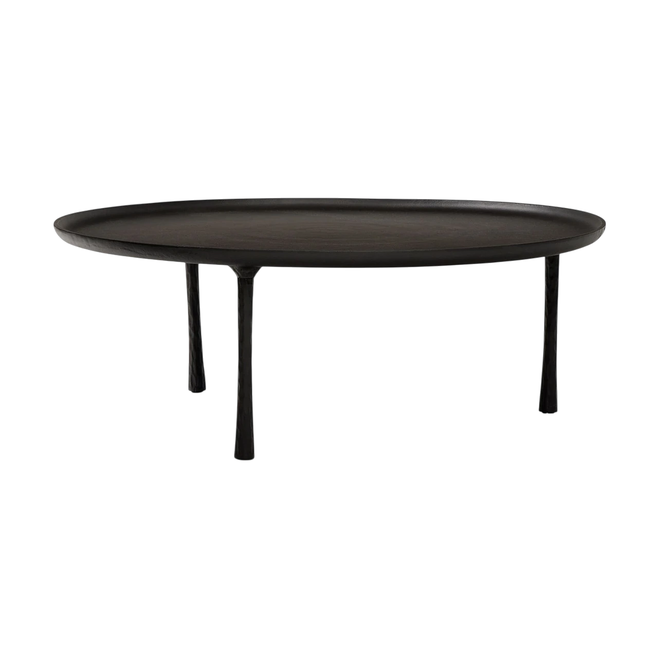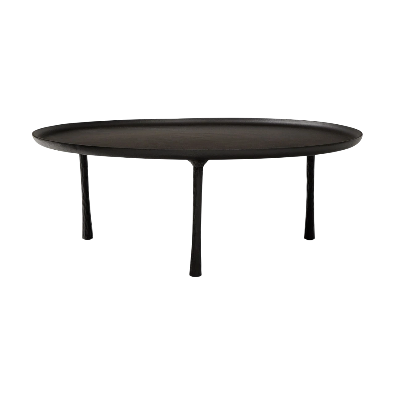 Coffee table crafted from cast metal with a hand-hammered texture. |