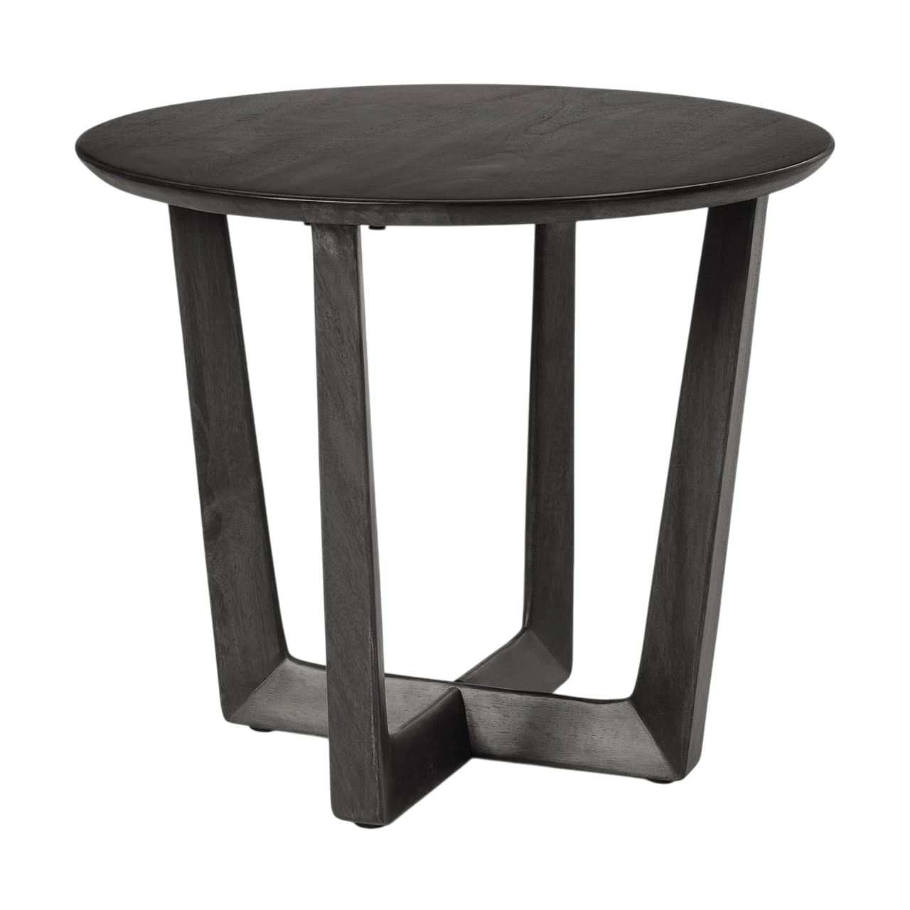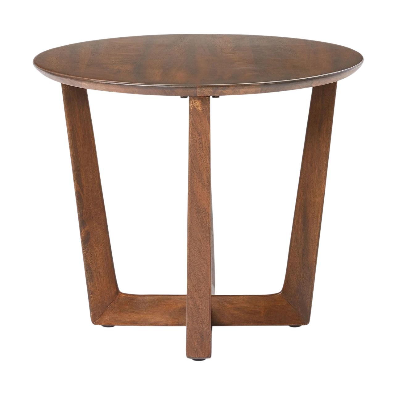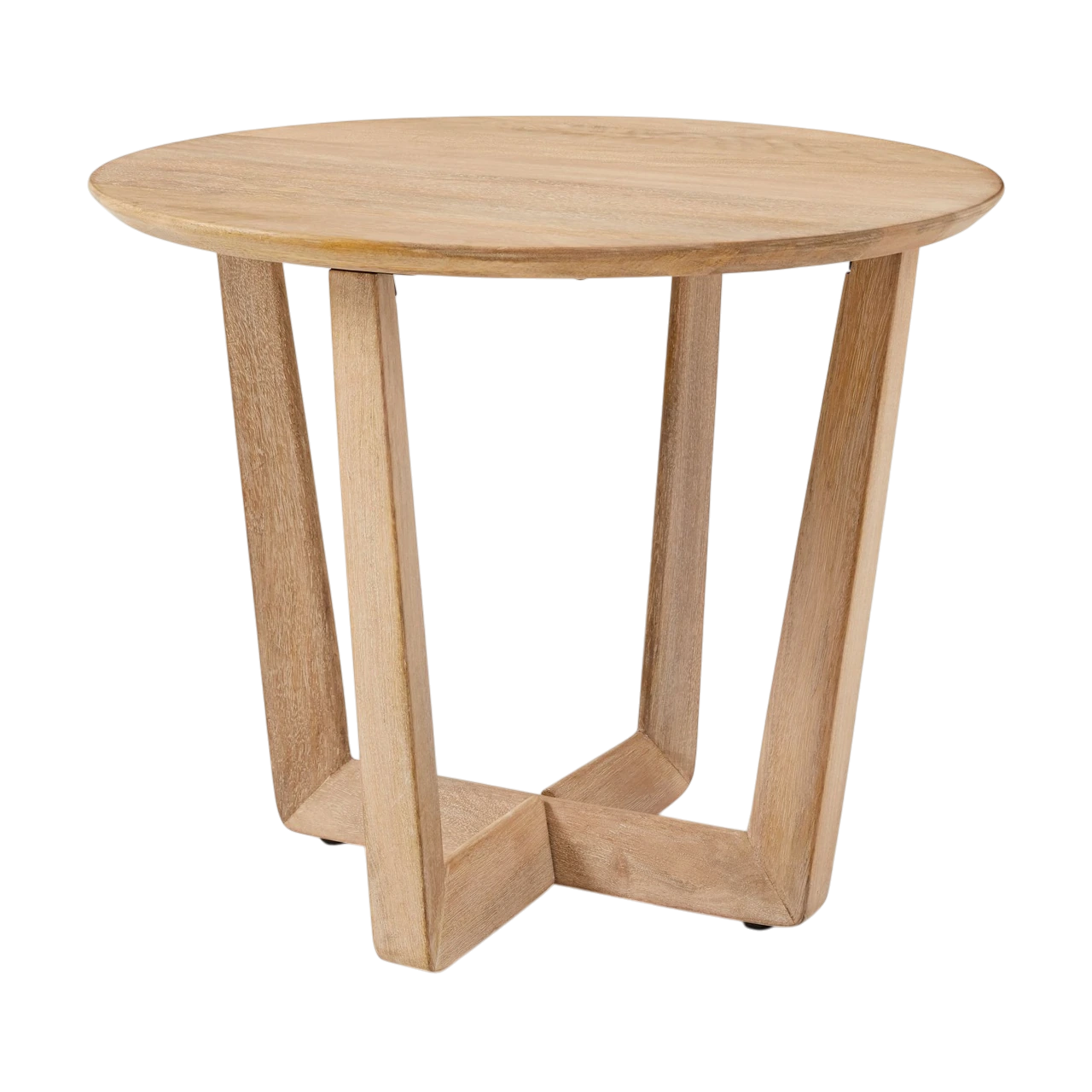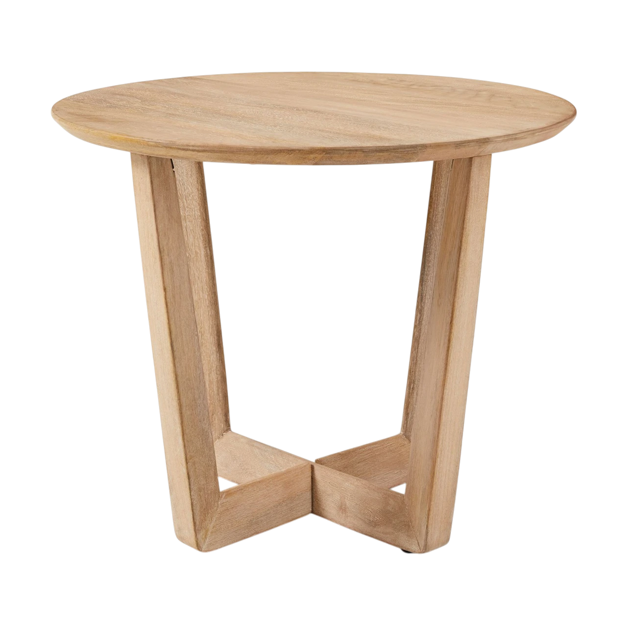 Round side table crafted from solid mango wood.