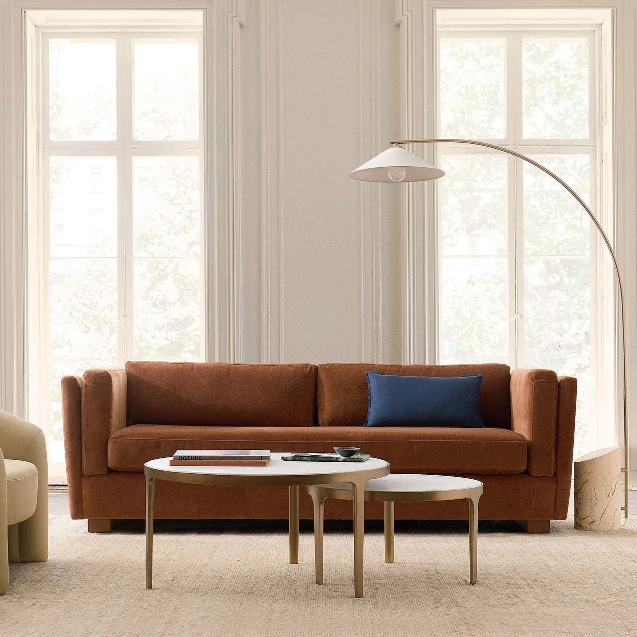 The Thea Sofa offers a relaxed, streamlined form defined by clean tailoring and a single seat cushion. Its simple silhouette and soft upholstery create a versatile piece that complements both casual and refined interiors.