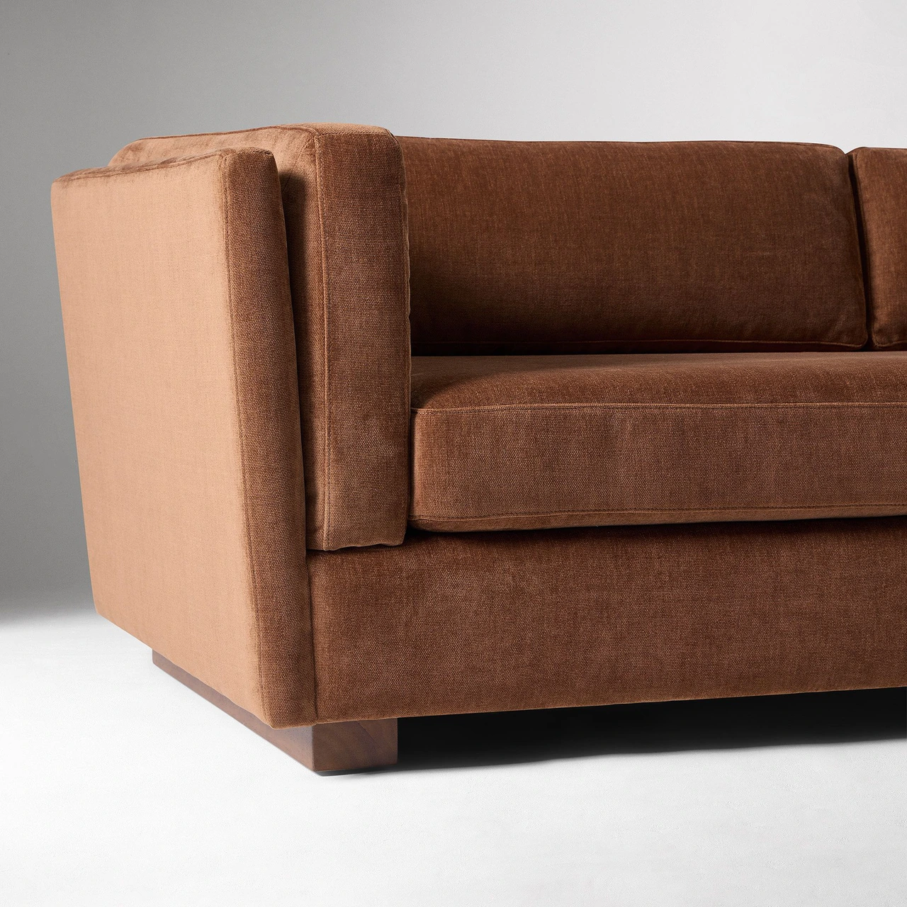 Standard sofa with a low, modern profile and single bench seat cushion.