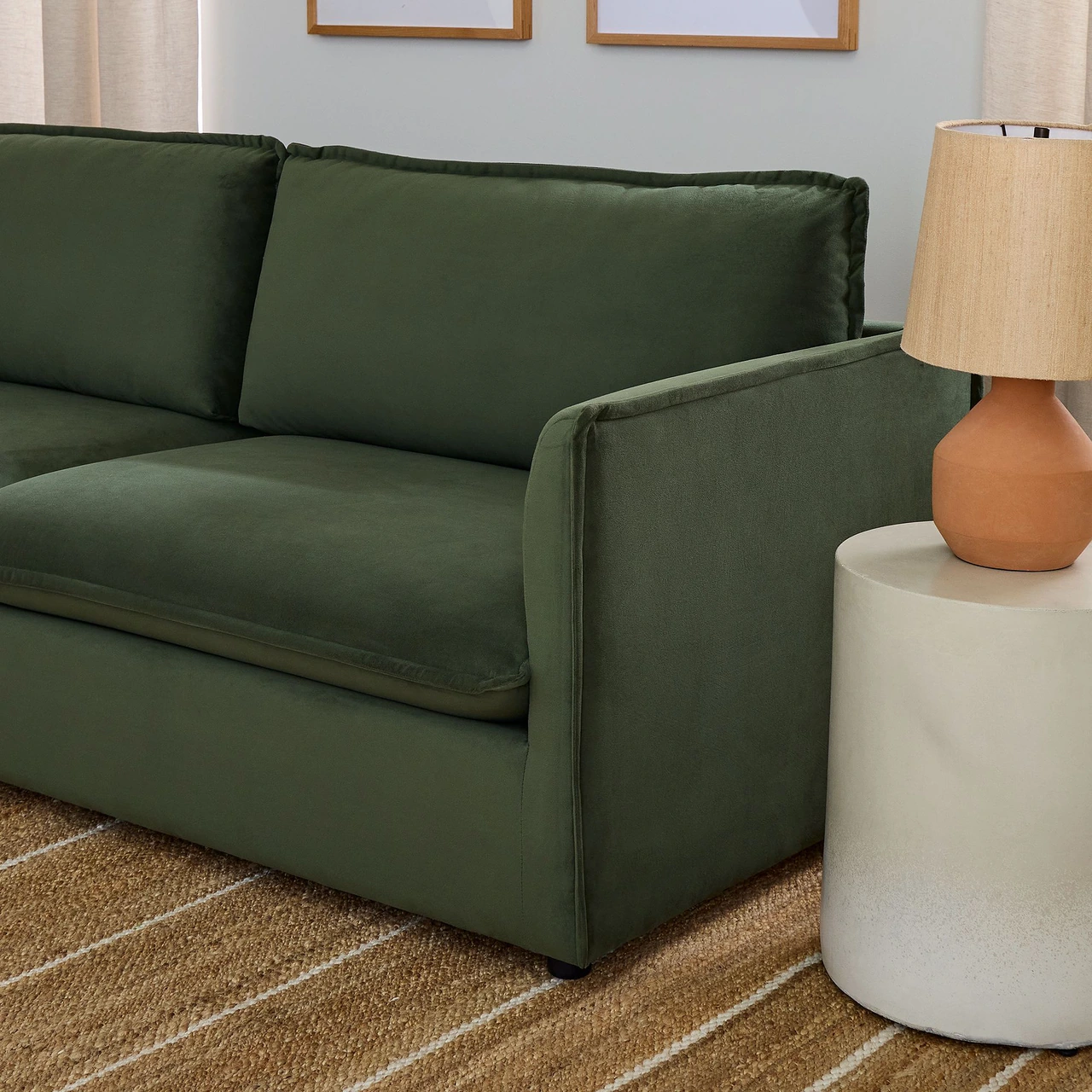 | West Elm Fabric | Distressed Velvet – Blue Denim, Modern Chenille – Juniper |